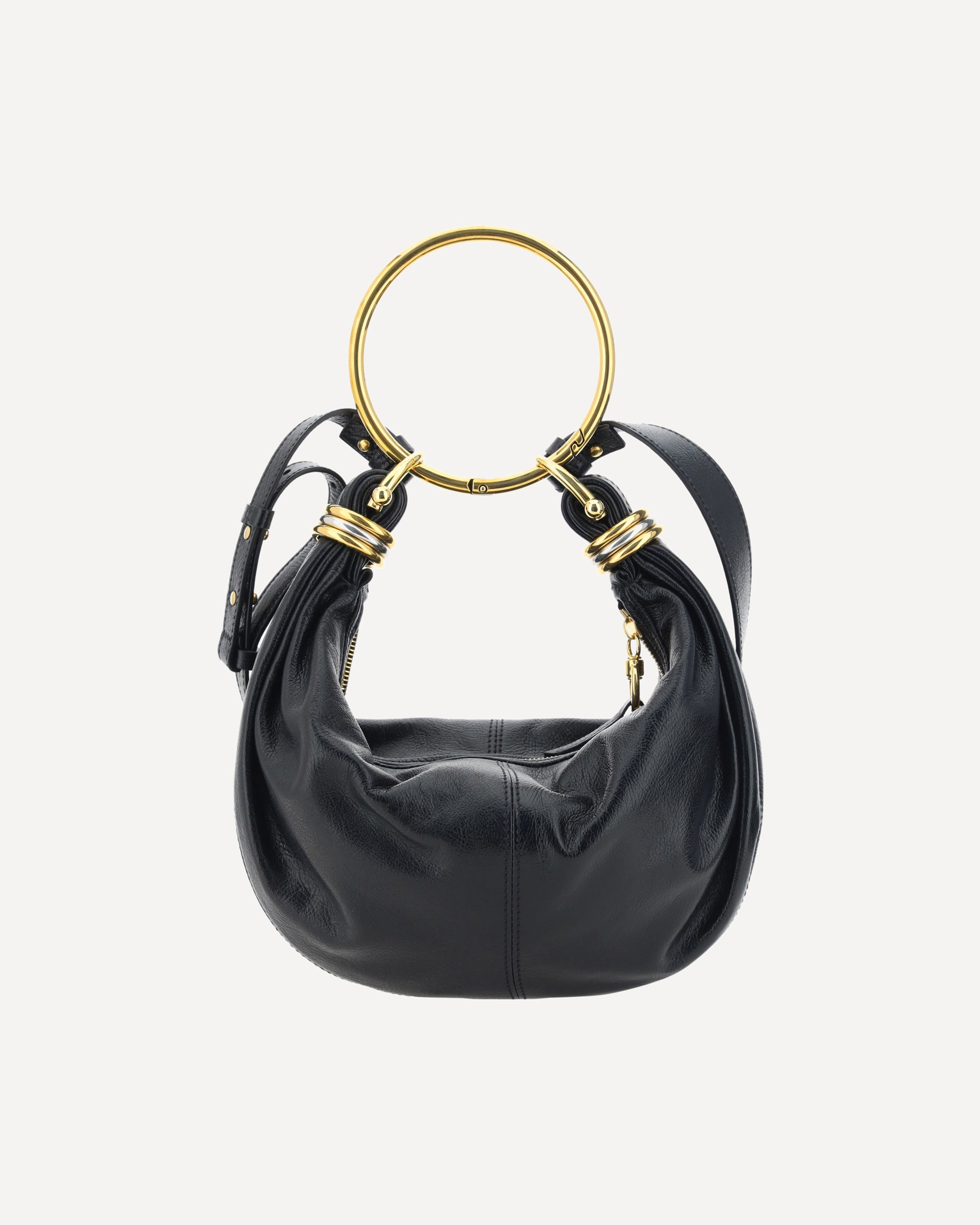 Leather Bracelet Handbag by Chloe, a round brass handle, an adjustable flat shoulder strap and removable top zipper closure, single interior compartment. DETAILS sku CHC24AS611N72_001 composition: CALF LEATHER BOS TAURUS 100% color group: BLACK gender: WOMAN season: AW24 size chart: UNI category name: HANDBAGS dimensions: 14 x 32 x 10 cm