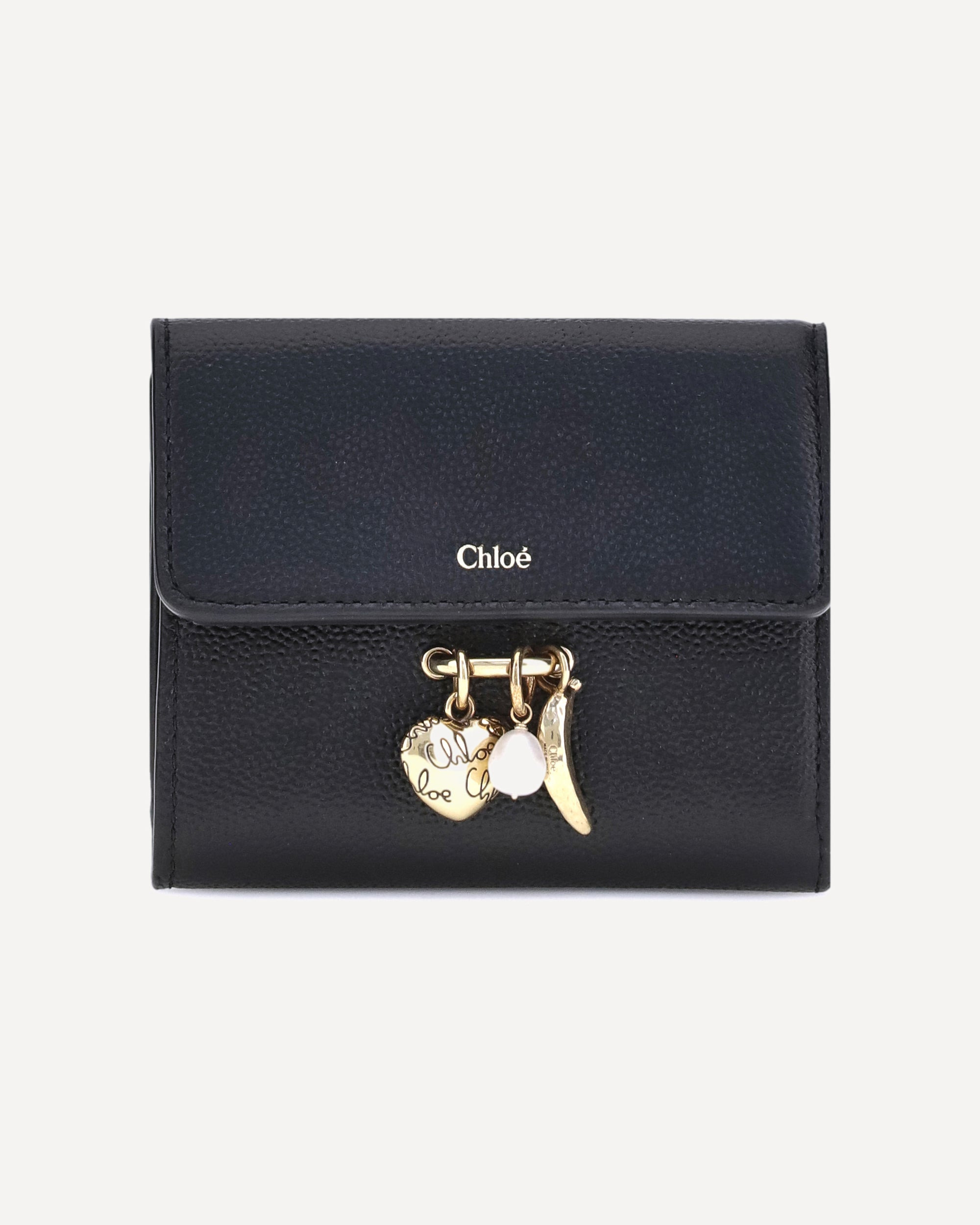 SMALL CHLOÉ CHARMS TRI-FOLD WALLET IN GRAINED LEATHER