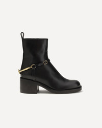 The Dakota Ankle Boots by Chloe reinterpret classic riding boots in semi-gloss calfskin, with a stacked heel and low-cut leg for comfort and stability. Gold metal logo straps and details add a distinctive touch, while a zipper closure completes the style. Made from Leather Working Group certified leather with sustainable and responsible processes. DETAILS - Sku: CH26S17GVV_001 - Season: SS26 - Composition: UPPER 100% Lamb Ovis Aries Aries SOLE 100% Rubber - MADE IN ITALY