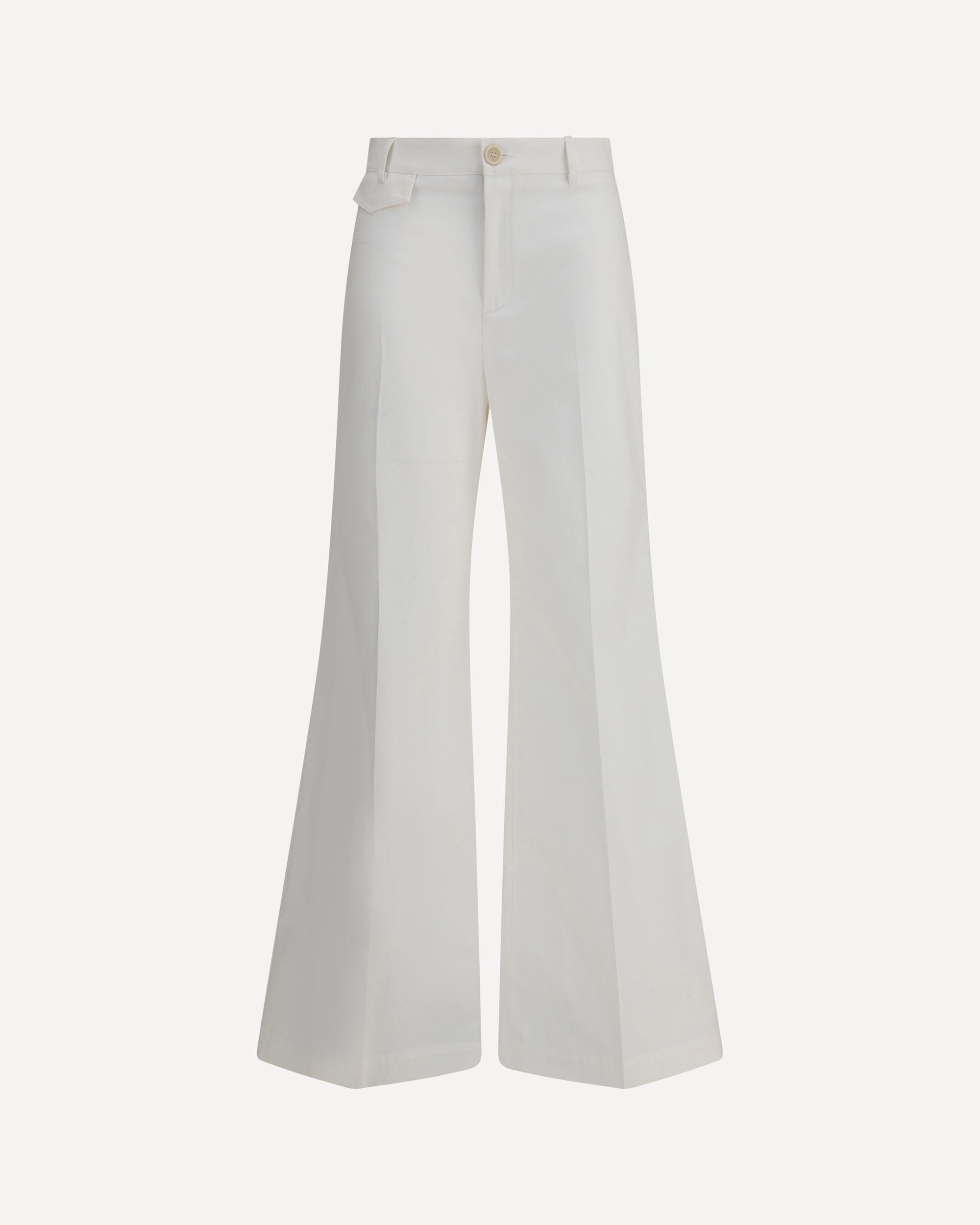 Chloe's cotton Pants are a versatile piece with a casual style, perfect for any occasion. They feature a classic five-pocket flare pattern that combines functionality with an iconic, on-trend silhouette. The zip-and-button front closure ensures a practical and secure fit. Equipped with belt loops at the waist, they offer the option to customize the look with accessories. Completing the design are two discreet and functional back welt pockets. These pants embody the relaxed elegance and practicality typical of Chloe's designs. DETAILS - Sku: CH25APA06340_107 - Season: AW25 - Fit: Regular - Composition: GENERAL 100% Cotton - MADE IN ITALY