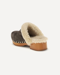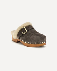 The Jeannette Clogs by Chloe are crafted from suede and lined with soft shearling for warm, cozy comfort. They are embellished with gold-tone studs and buckles shaped like the brand’s initial. The wooden sole and suede upper combine tradition and contemporary style in a versatile and refined design. DETAILS - Sku: CH25W12ZTZ_28E - Season: AW25 - Composition: INNER 100% Fur SOLE 100% Wood OUTER 100% Leather - MADE IN ITALY
