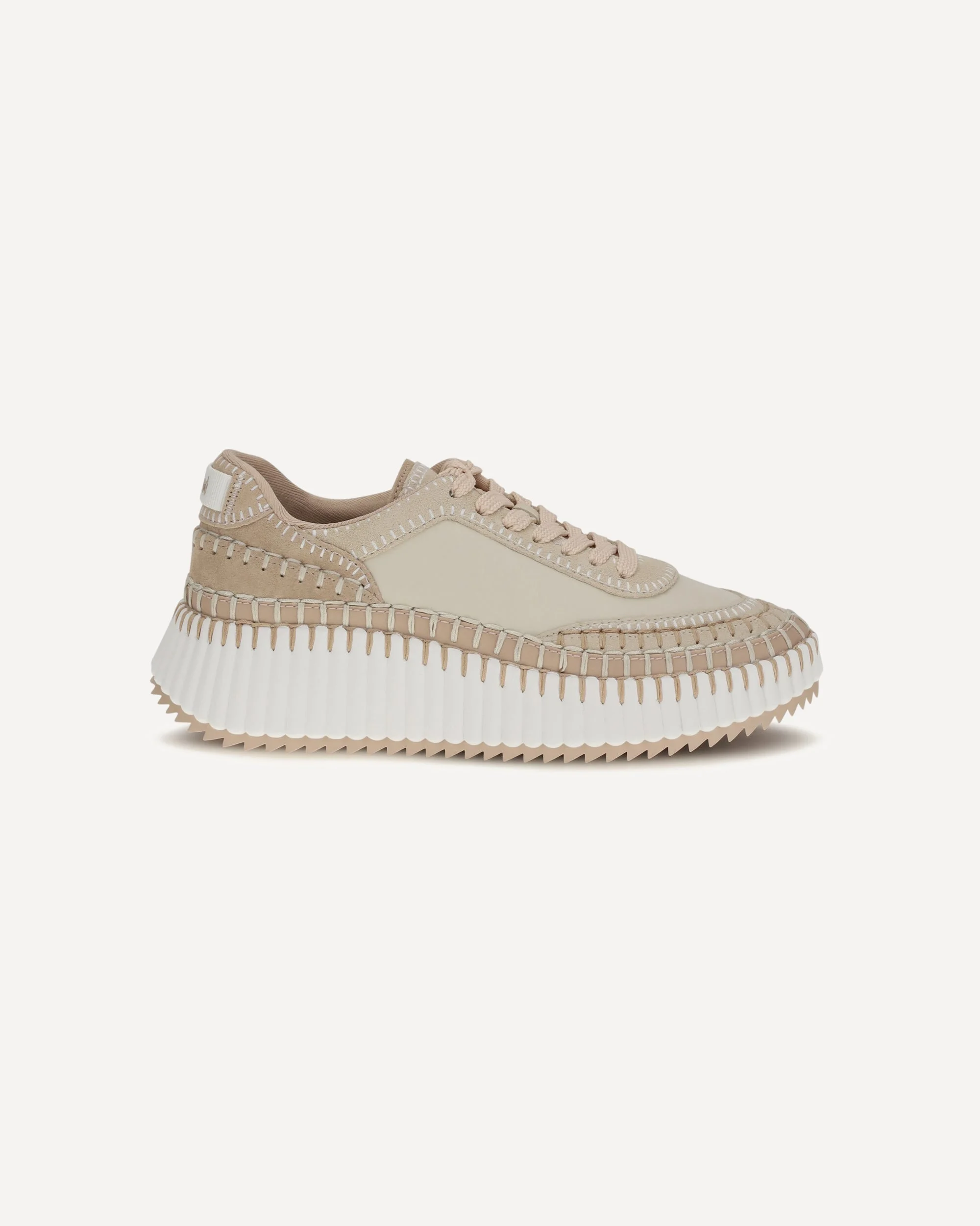Calfskin nama Sneakers by Chloe, lace-up front closure, mesh design on side panels, crater-effect structured platform sole, iconic brand monogram pressure-stamped at heel, logo-printed insole. DETAILS - Sku: CHC24S00RBD_01I - Season: SS26 - Composition: UPPER 100% Calf Leather Bos Taurus SOLE 100% Rubber - MADE IN VIETNAM