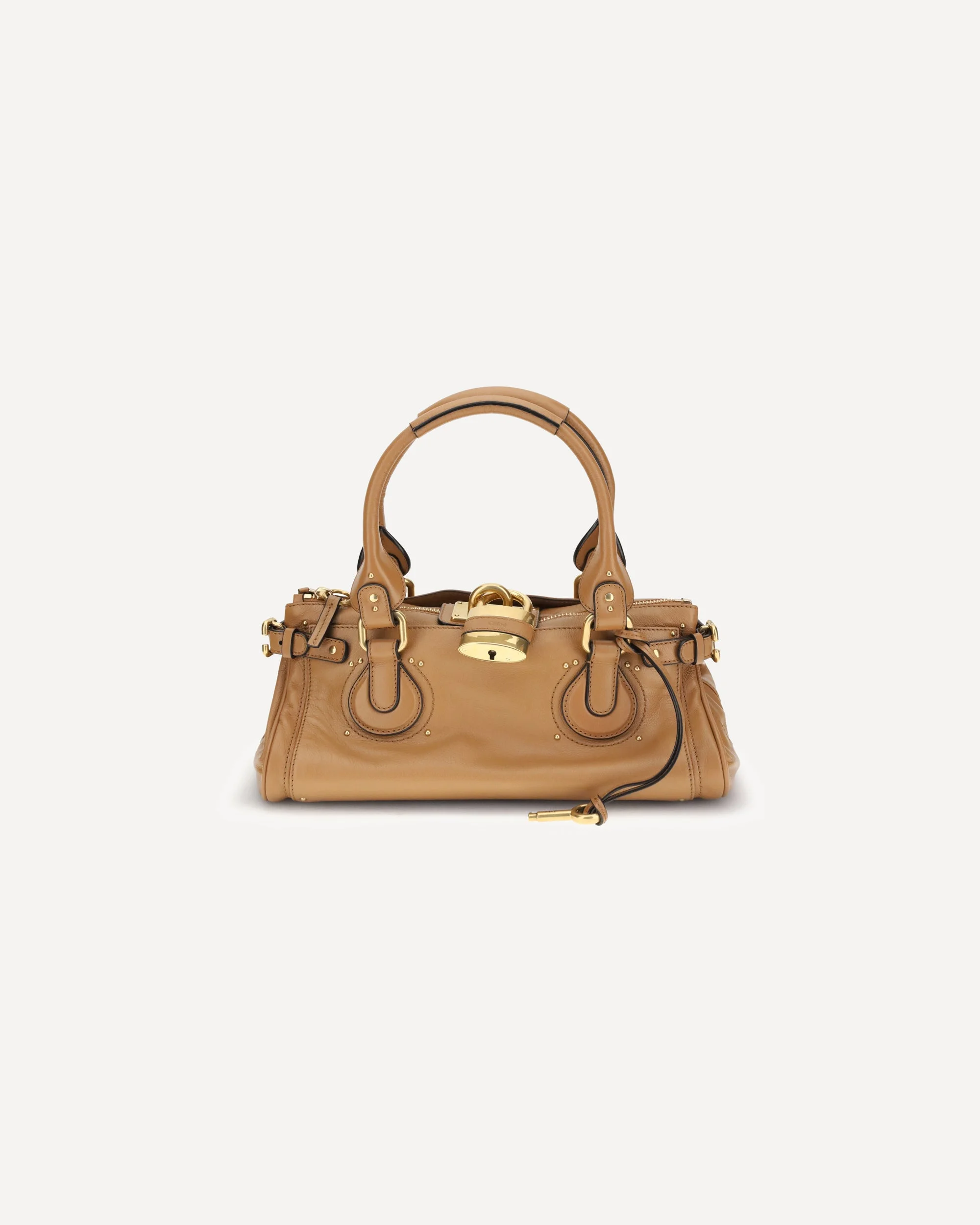 The Paddington Bag in garnet leather by Chloe is crafted from buffalo leather with suede leather details. Equipped with an aluminum lock, it can be carried by hand or over the shoulder. It features a main compartment, flat front and back pockets, an internal zip pocket, and a zip closure. DETAILS - Sku: CH25WS802P75_209 - Season: AW25 - Dimension: 36x36x18 - Composition: GENERAL 99% Buffalo 1% Leather - MADE IN ITALY