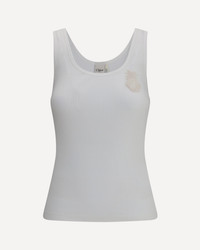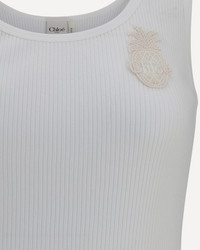 Chloe's ribbed jersey Top is a versatile and feminine garment. Made of soft ribbed jersey, it offers a comfortable fit that flatters the silhouette. The classic round neckline makes it a passe-partout for a variety of occasions, while a delicate applique lace detail on the front adds a touch of romance and sophistication, elevating the simple design with Chloe's signature elegance. DETAILS - Sku: CH25AJH12176_101 - Season: AW25 - Fit: Slim - Composition: GENERAL 100% Cotton - MADE IN ITALY