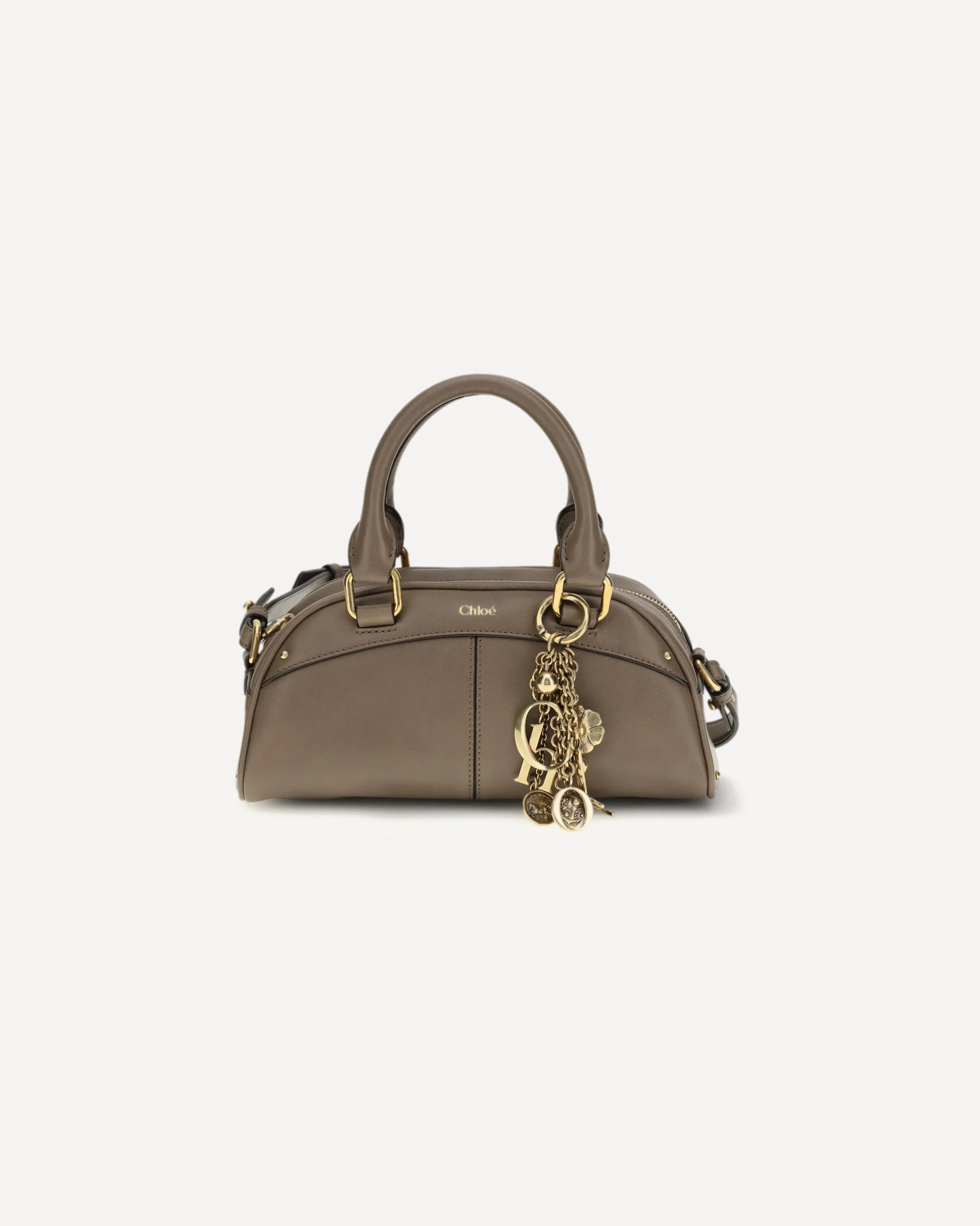 The small Bowling Handbag by Chloe is crafted from soft calfskin and combines a structured, rounded silhouette with sturdy top handles. The removable gold-colored keychain, with pendants and Chloe letters, pays homage to the Maison's tradition. It can be carried by hand or over the shoulder thanks to the adjustable leather shoulder strap. DETAILS - Sku: CH26SS956Q86_28H - Season: SS26 - Dimension: 24x24x11 - Composition: GENERAL 100% Calf Leather Bos Taurus - MADE IN ITALY
