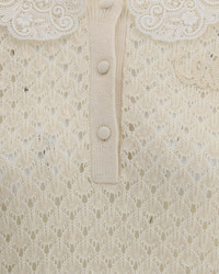 Lace-trimmed cotton, alpaca and silk-blend polo sweater Cream