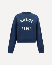 Cotton Sweatshirt by Chloe, ribbed crew neck, ribbed cuffs, ribbed hem, contrasting iconic brand monogram at front, monochrome design, regular fit. DETAILS sku CH24AJH12192_4C6 composition: COTTON 100% color group: BLUE gender: WOMAN season: AW24 size chart: STANDARD category name: SWEATSHIRTS