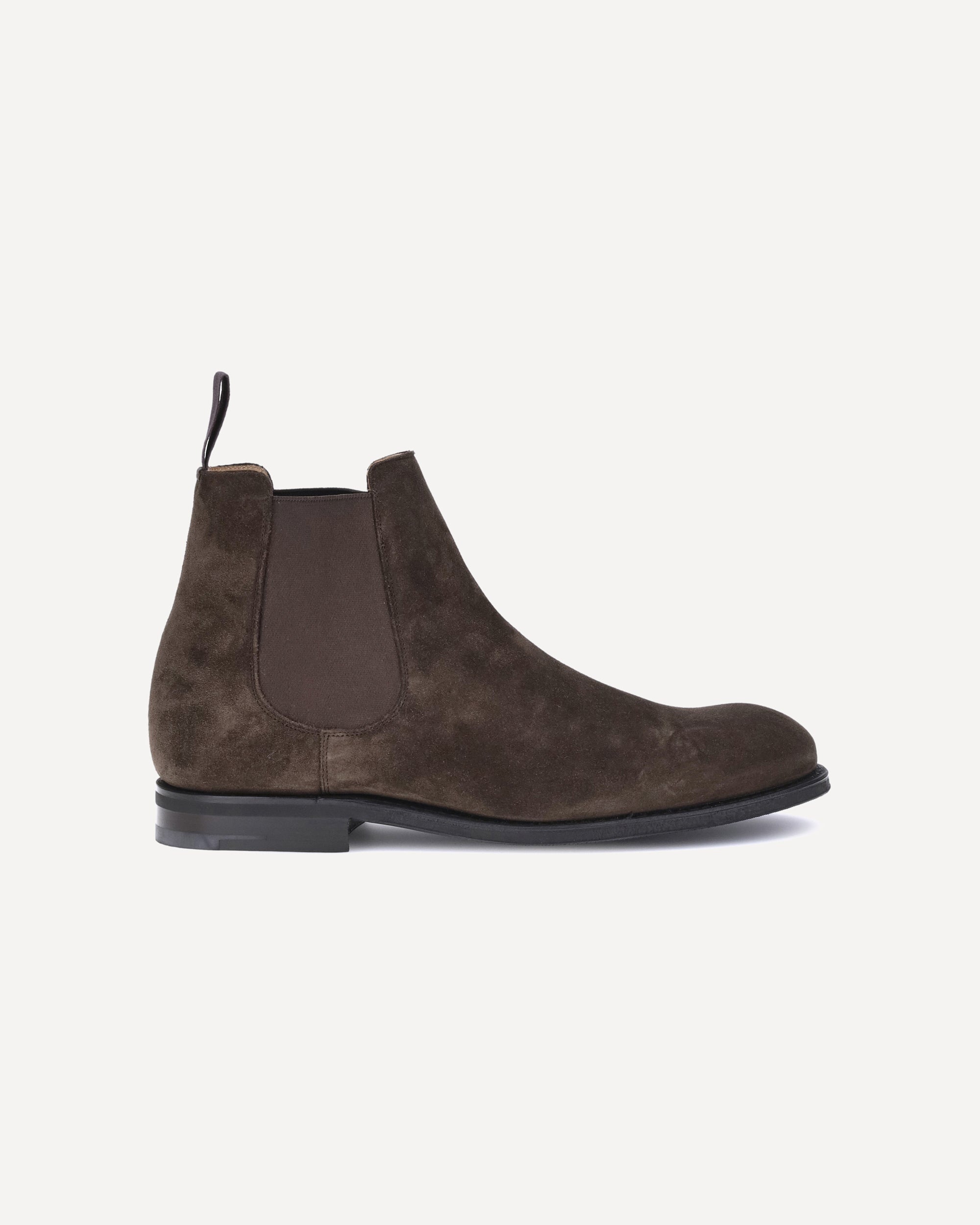 Church's Chelsea Ankle Boots combine traditional craftsmanship and contemporary spirit in a model inspired by the world of horseback riding. Made of premium suede leather, they are distinguished by a smooth surface free of superfluous details, giving the shoe an understated elegance. The elastic side inserts, typical of the Chelsea model, facilitate the fit and accentuate its functionality, while the lightweight sole adds a dynamic touch, perfect for accompanying the rhythm of daily life in style. A model that combines comfort, quality and discreet sophistication. DETAILS - Sku: ETC315FG000009CA_F0AEV - Season: AW25 - Composition: GENERAL 100% Calf Leather Bos Taurus - MADE IN GREAT BRITAIN