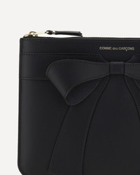 The Big Bow leather coin purse from Comme des Garcons is an elegant and refined accessory, featuring a press-stamped logo on the front. The 3D bow detail applied on the front adds a touch of originality and femininity. The top zipper closure ensures practicality and security, while the interior, with a single compartment, offers enough space to store coins or small items. DETAILS sku SA5100BB_1 composition: CALF LEATHER BOS TAURUS 100% color group: BLACK gender: MAN season: SS25 size chart: UNI category name: WALLETS dimensions: 16 x 21 cm