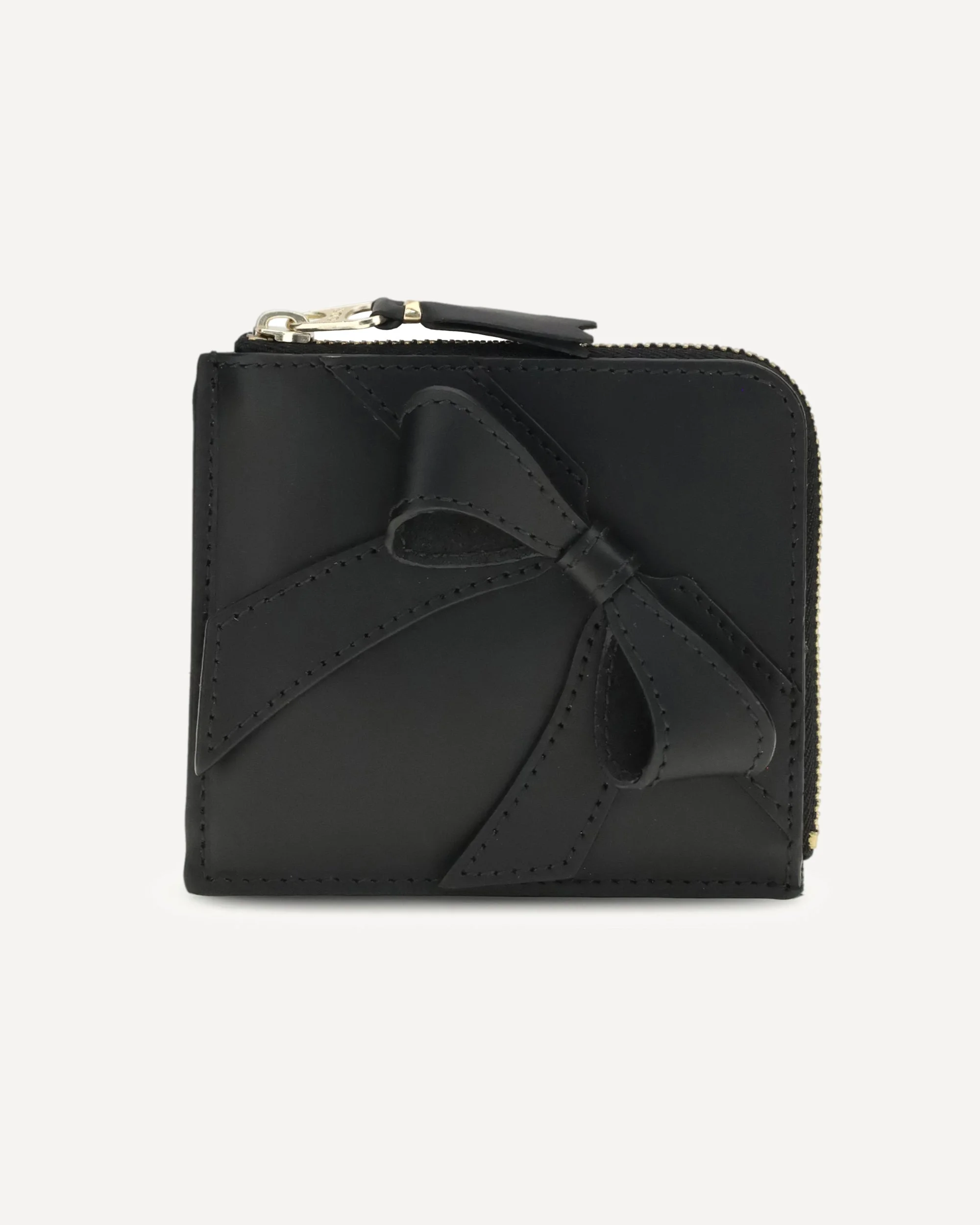 The Big Bow Wallet by Comme Des Garcons features a practical zip-around closure and offers card slots for optimal functionality. The elegant and distinctive design with the large bow adds a touch of originality and sophistication. DETAILS - Sku: SA3100BB_1 - Season: SS26 - Dimension: 9.5x9.5 - Composition: GENERAL 100% Calf Leather Bos Taurus - MADE IN SPAIN