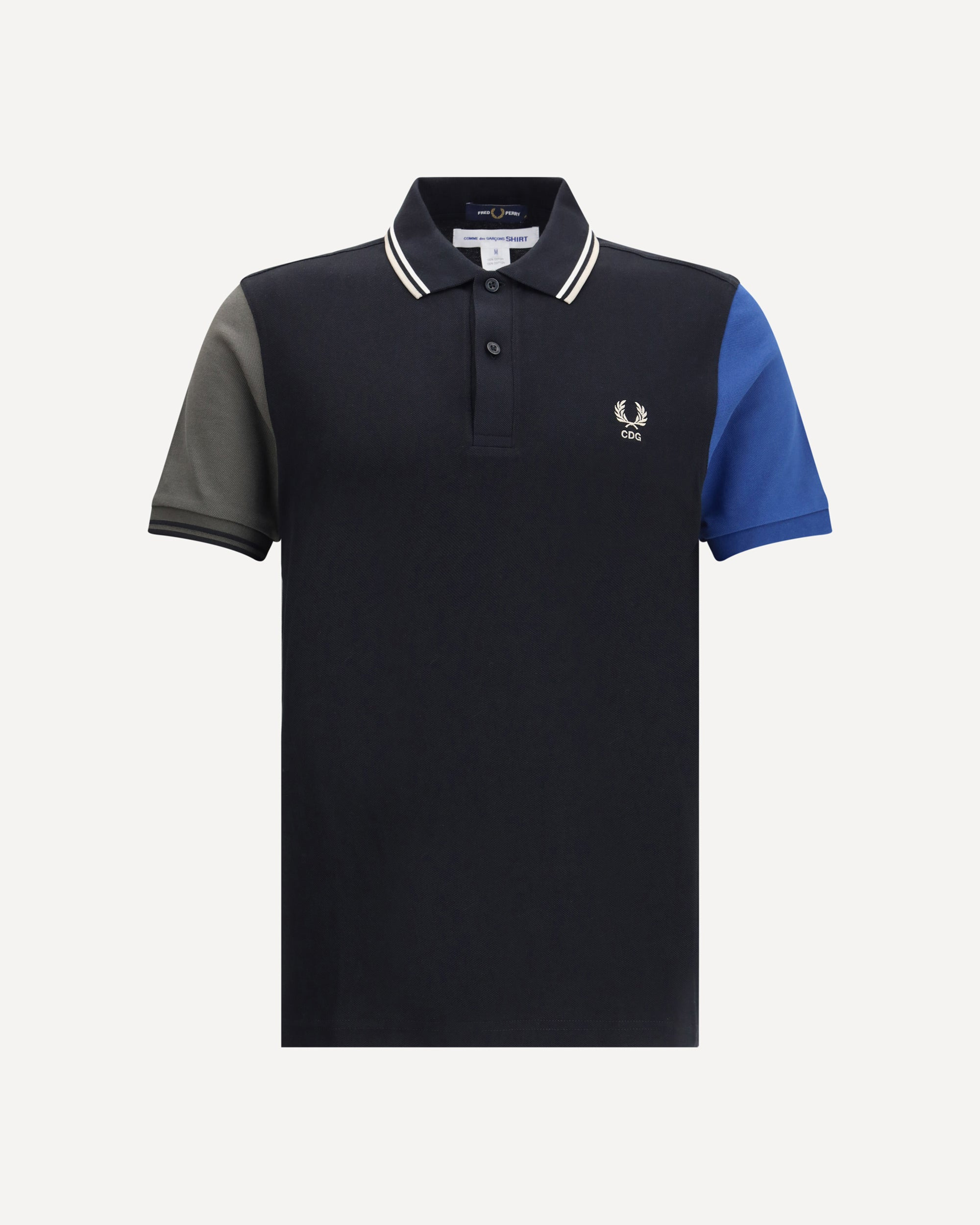 The Comme Des Garcons X Fred Perry Polo features a regular fit and is crafted from high-quality smooth fabric. The black design with a green right sleeve and a blue left sleeve creates a bold, contemporary contrast. An essential piece for a modern wardrobe, combining sophistication with an avant-garde touch. DETAILS - Sku: FPT501W25_1 - Season: AW25 - Fit: Regular - Composition: GENERAL 100% Cotton - MADE IN CHINA