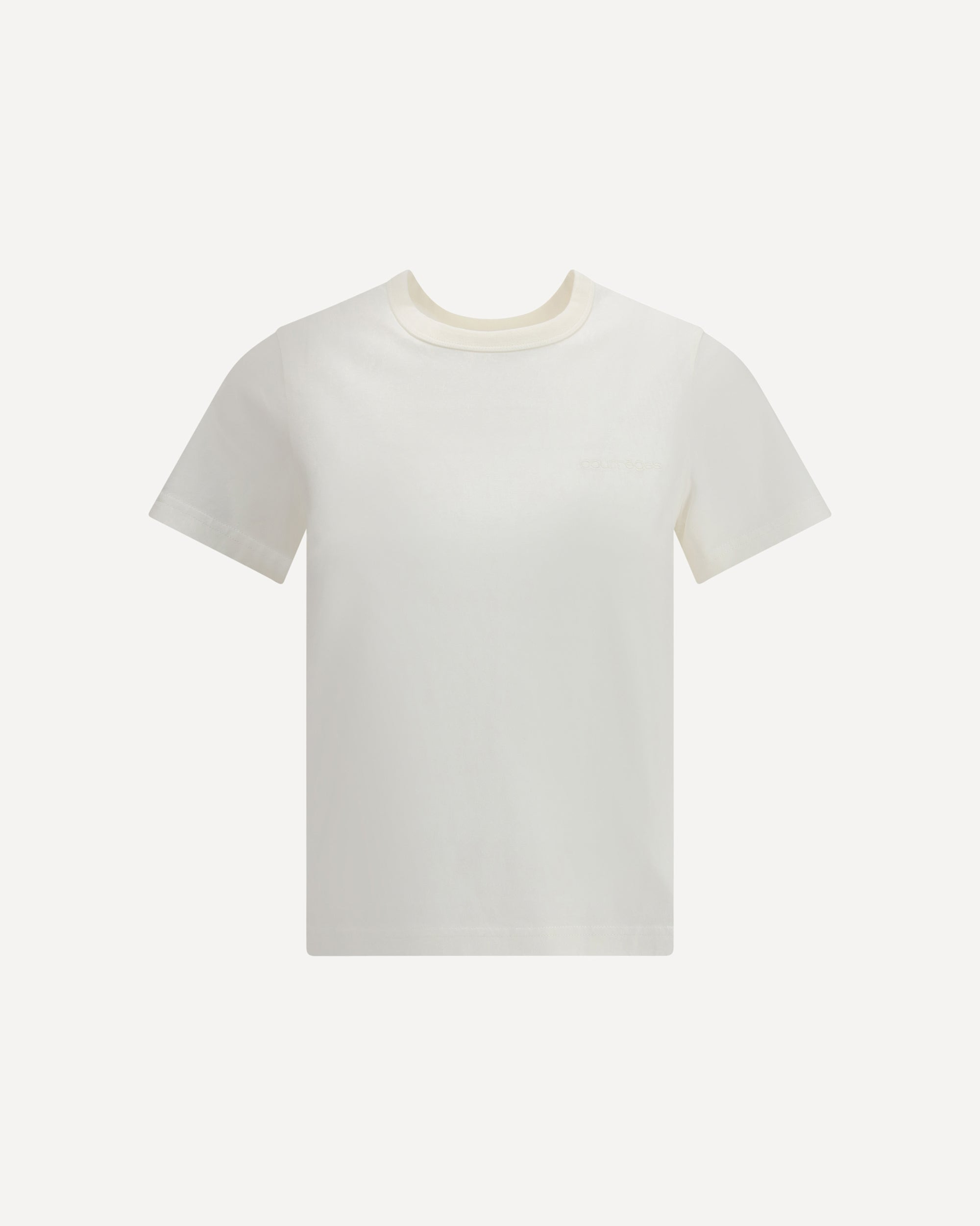 The Courreges Embroidered logo T-Shirt is an essential garment with a clean, contemporary design. Featuring a ribbed crew neck and made of soft cotton, it features an embroidered logo on the front, a distinctive detail that adds an iconic touch to a simple and versatile model. DETAILS - Sku: 325JTS217JS0233_0001 - Season: AW25 - Fit: Slim - Composition: GENERAL 100% Cotton - MADE IN PORTUGAL