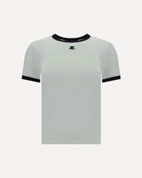 Cotton T-Shirt by Courreges, contrasting crew neck, iconic brand logo on front, monochrome pattern, regular fit. DETAILS - Sku: VESJTS017JS0070_0098 - Season: AW25 - Composition: GENERAL 100% Cotton - MADE IN PORTUGAL