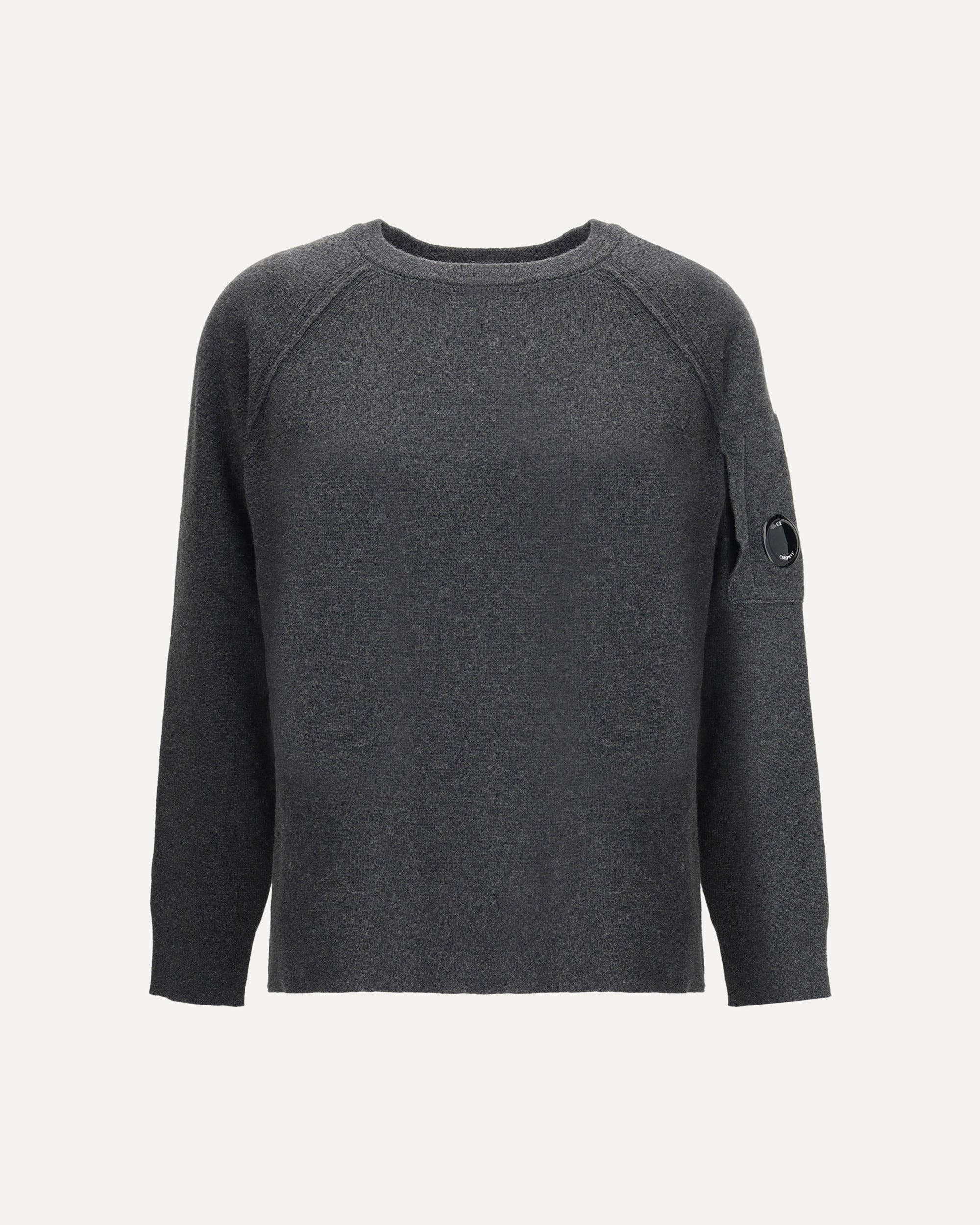 C.P. Company's Wool Sweater is distinguished by its long sleeves, one of which is enhanced by an iconic detail: the logo lens with integrated zipper pocket. Ribbed edges complete the design, lending a touch of structure and character to a functional garment with a recognizable style. DETAILS - Sku: 19CMKN040A110149A_978 - Season: AW25 - Fit: Regular - Composition: GENERAL 80% Wool 20% Polyamide - MADE IN MOLDOVA
