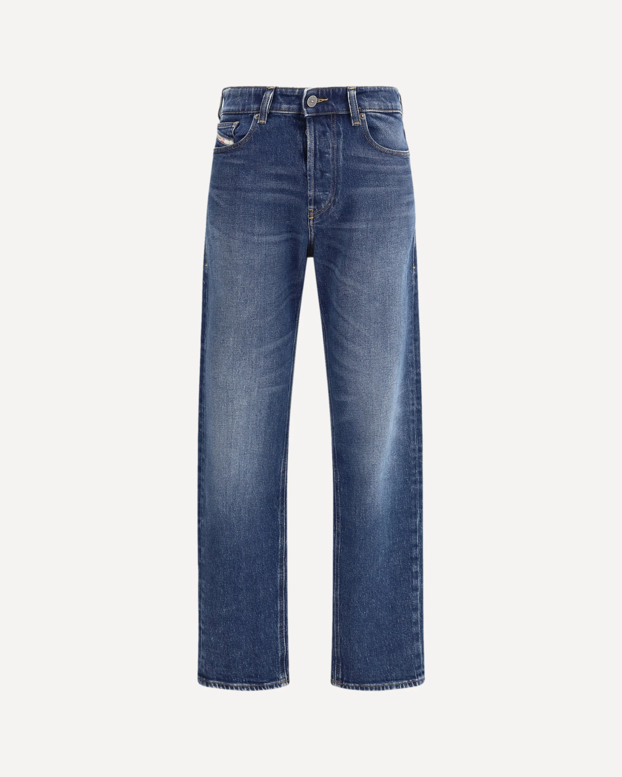 The 1988 D-Ark regular Jeans by Diesel feature a loose fit with a regular waist and straight leg. The design is defined by a cut waist and frayed pocket details, adding a bold touch to the look. Made from slightly stretch recycled cotton, this comfort denim comes in a dark blue medium-treated wash with a subtly worn-in finish, part of Diesel’s signature DNA selection. DETAILS - Sku: A0701809L21_01 - Season: AW25 - Fit: Regular - Composition: GENERAL 99% Cotton 1% Elastane - MADE IN TUNISIA