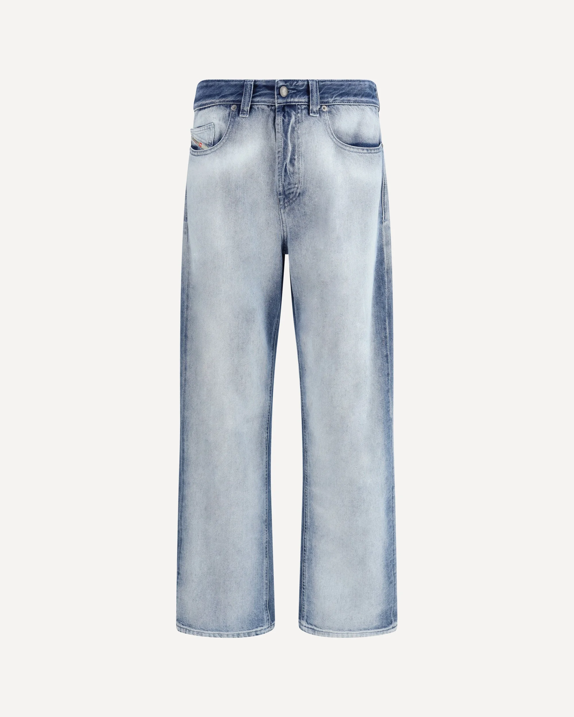 The 2001 D-macro-fsi2 Jeans by Diesel are a contemporary bootcut style with a low waist and slim leg that flares from the calf to the ankle. Made from cotton and lyocell fix denim, they are both compact and lightweight. The "skeleton" effect wash, achieved through manual spraying and masking techniques, preserves the darker tones along the seams, giving the jeans an authentic and distinctive look, ideal for casual and trendy outfits. DETAILS - Sku: A2385109P29_01 - Season: SS26 - Fit: Regular - Composition: GENERAL 82% Cotton 18% Lyocell - MADE IN TUNISIA