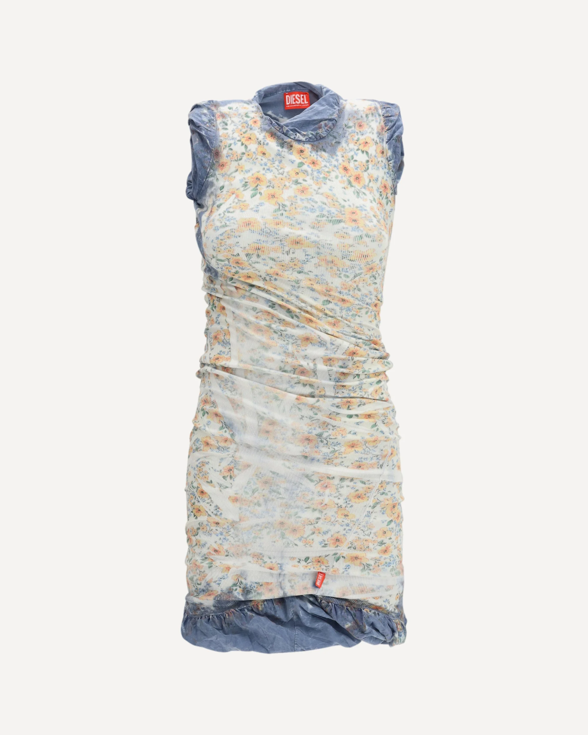 The D-Ayana Dress buy Diesel expresses refined femininity through a contemporary lens. Crafted from slightly sheer stretch knit, it features a body-hugging mini silhouette, wide straps, and a classic round neckline that enhances the shoulder line. Set on a white base, the design is defined by a multicolored floral print, enriched by ombre shading highlighting the shoulders and hem. Ruching and draped detailing sculpt the figure, creating dynamic movement and elevated elegance. A distinctive statement piece signed by Diesel. DETAILS - Sku: A229370IFBA_8GJA - Season: SS26 - Fit: Slim - Composition: GENERAL 94% Cotton 6% Elastane - MADE IN TUNISIA