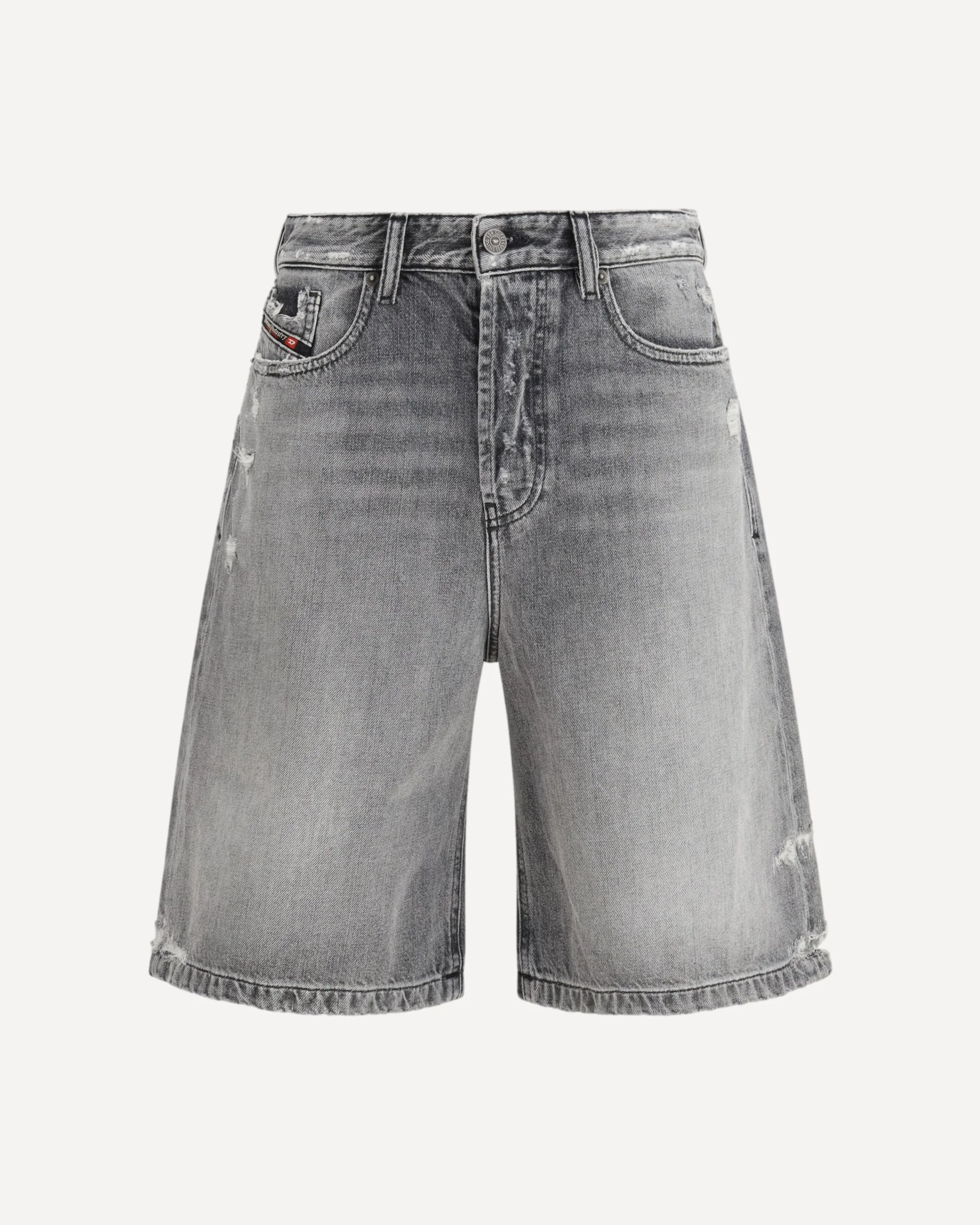 The De-Sire-Short Bermuda by Diesel delivers a relaxed, urban take on denim. Crafted from used-effect denim with distressed details, it features a front button-fly fastening finished with a metal logo button. The five-pocket design is complemented by belt loops, a logo label on the coin pocket, and a logo back patch at the waistband. Designed with a knee-length cut and a relaxed fit, these bermuda shorts are perfect for casual, statement looks. DETAILS - Sku: A1405109P08_02 - Season: SS26 - Fit: Regular - Composition: GENERAL 100% Cotton - MADE IN TUNISIA