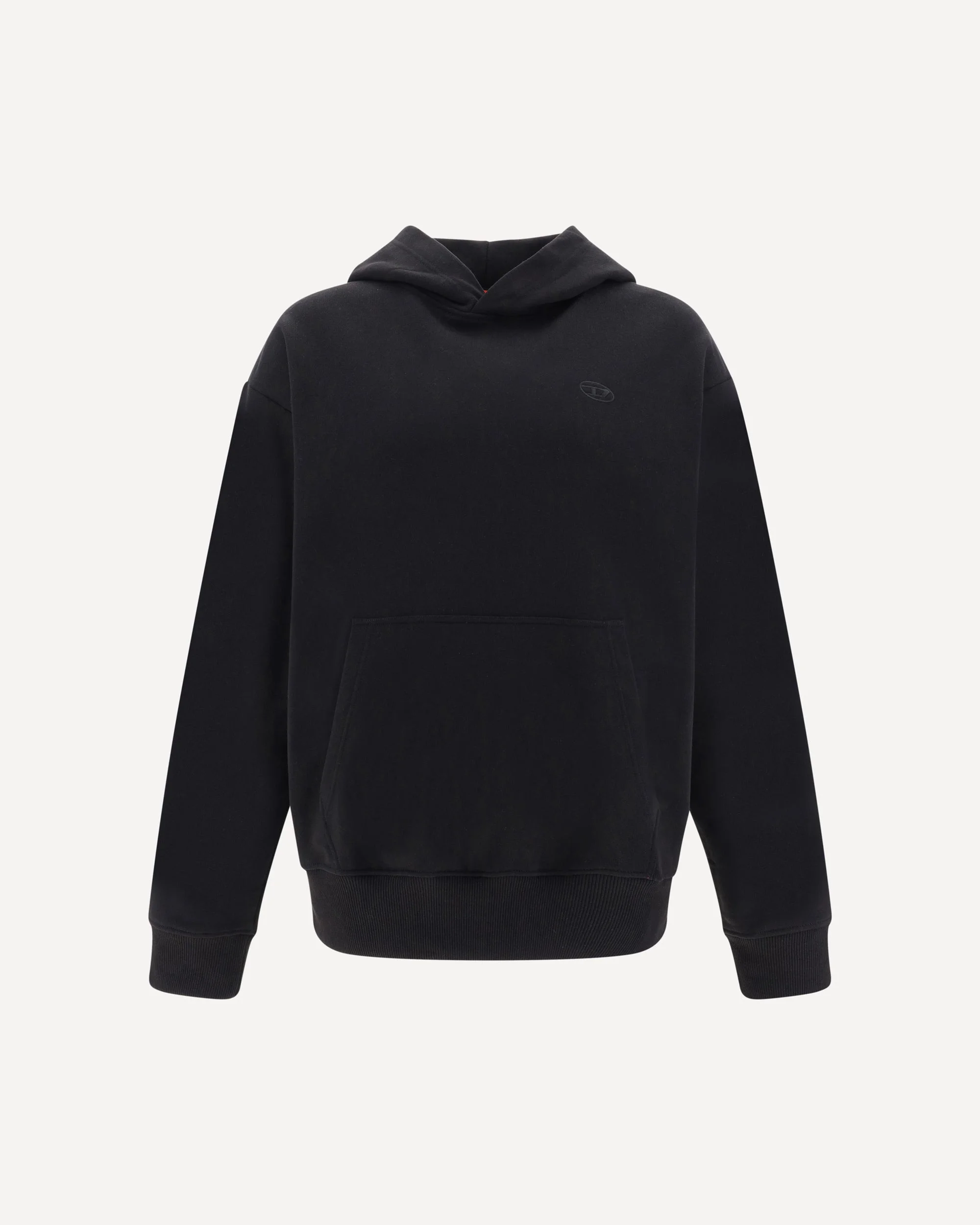 Macs Hoodie by Diesel, ribbed cuffs, ribbed hem, front kangaroo pocket, iconic tone-on-tone brand logo embroidered on front, contrasting maxi logo on back, regular fit. DETAILS sku A113040GYCJ_9XX composition : COTTON 95% ELASTANE 5% color group : BLACK gender : MAN season : AW23 size chart : MAN STANDARD category name : SWEATSHIRTS