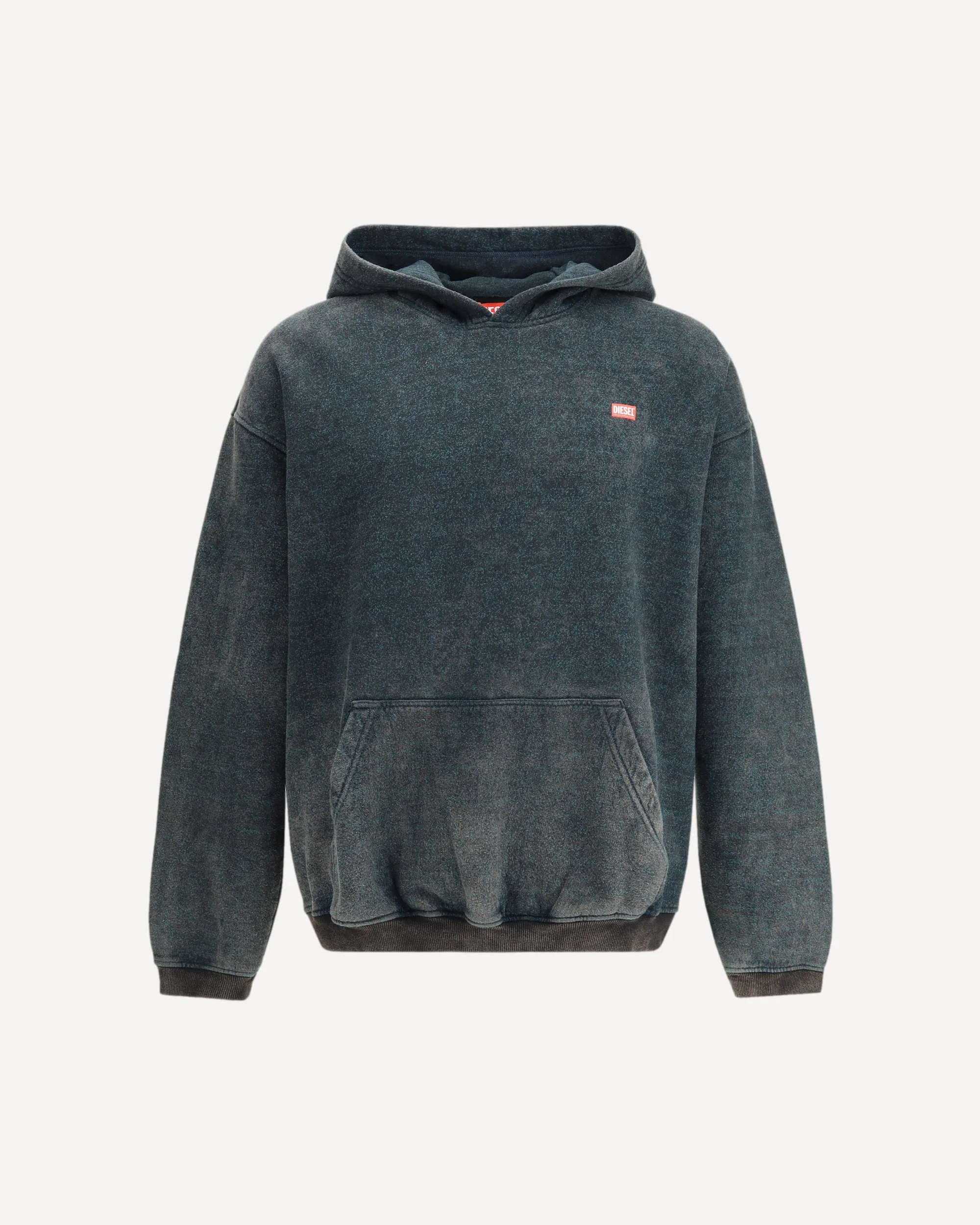 The S-Kai Hoodie by Diesel is crafted from soft, slightly stretch cotton for exceptional comfort and a relaxed fit. It features a hood, a practical kangaroo pocket, and ribbed cuffs and hem for a refined, modern look. The Diesel logo is applied on the left chest, adding a subtle yet iconic detail. DETAILS - Sku: A186500AGBZ_9XXA - Season: AW25 - Fit: Regular - Composition: GENERAL 67% Polyester 33% Cotton - MADE IN BULGARIA