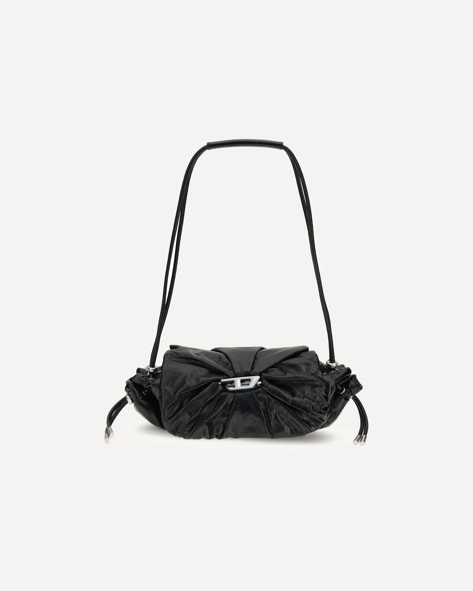 The Scrunch-D Shoulder Bag by Diesel is a modern and practical accessory. Featuring two round handles, it offers a front closure with a magnetic flap for easy access to its contents. The brand's iconic appliqued logo on the front adds a distinctive touch, while the interior zippered pocket offers more organization. Perfect for those seeking a functional and trendy design, this bag combines style and practicality in a stylish way. DETAILS - Sku: X10331P1003_T8013 - Season: AW25 - Dimension: 40x40x12 - Composition: GENERAL 100% Calf Leather Bos Taurus - MADE IN CHINA