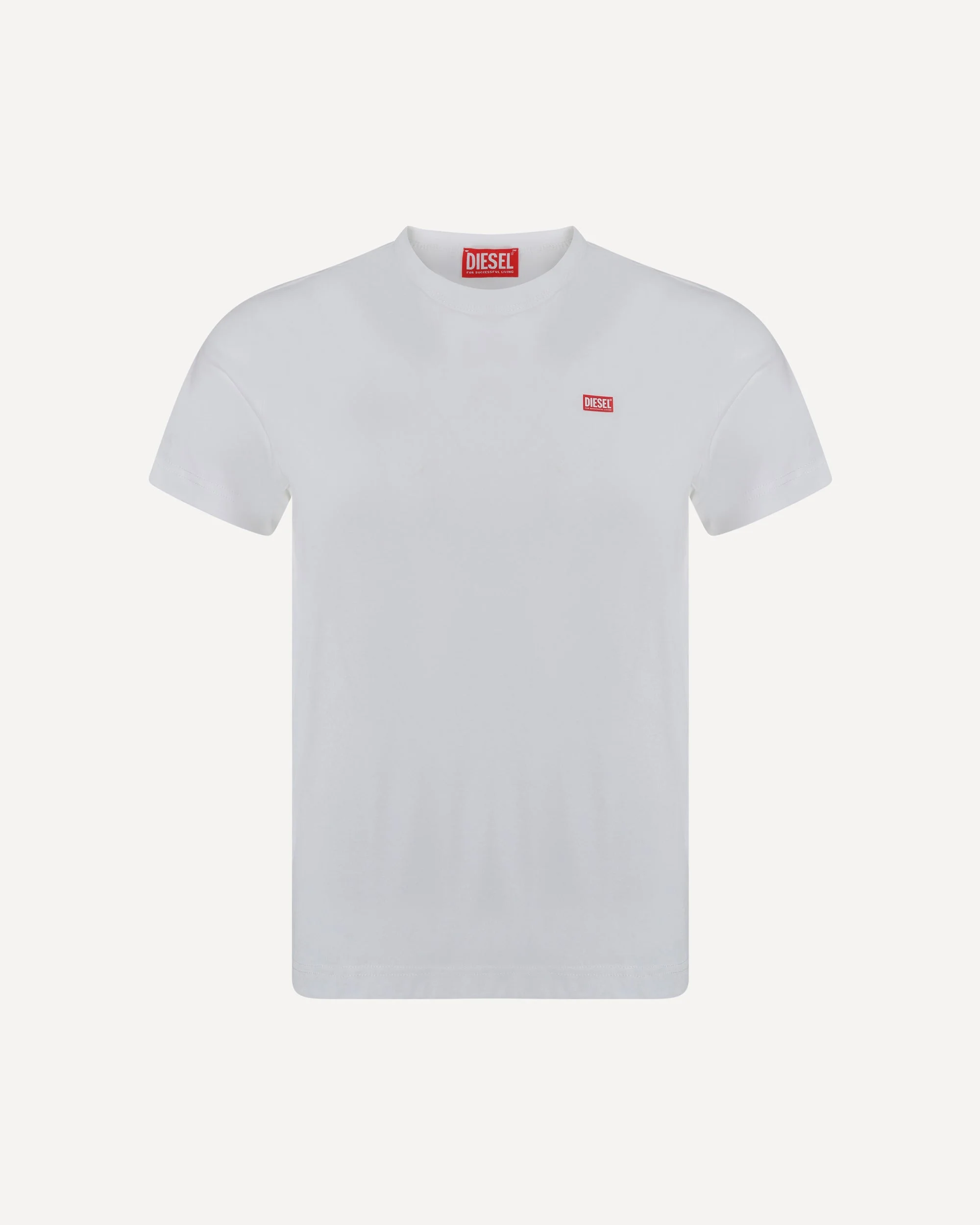 Cotton T-Shirt by Diesel, ribbed crew neck, iconic contrasting brand monogram at front, monochrome pattern, regular fit DETAILS sku A148190SKAF_100 composition: COTTON 100% color group: WHITE gender: MAN season: AW24 size chart: STANDARD category name: T-SHIRTS