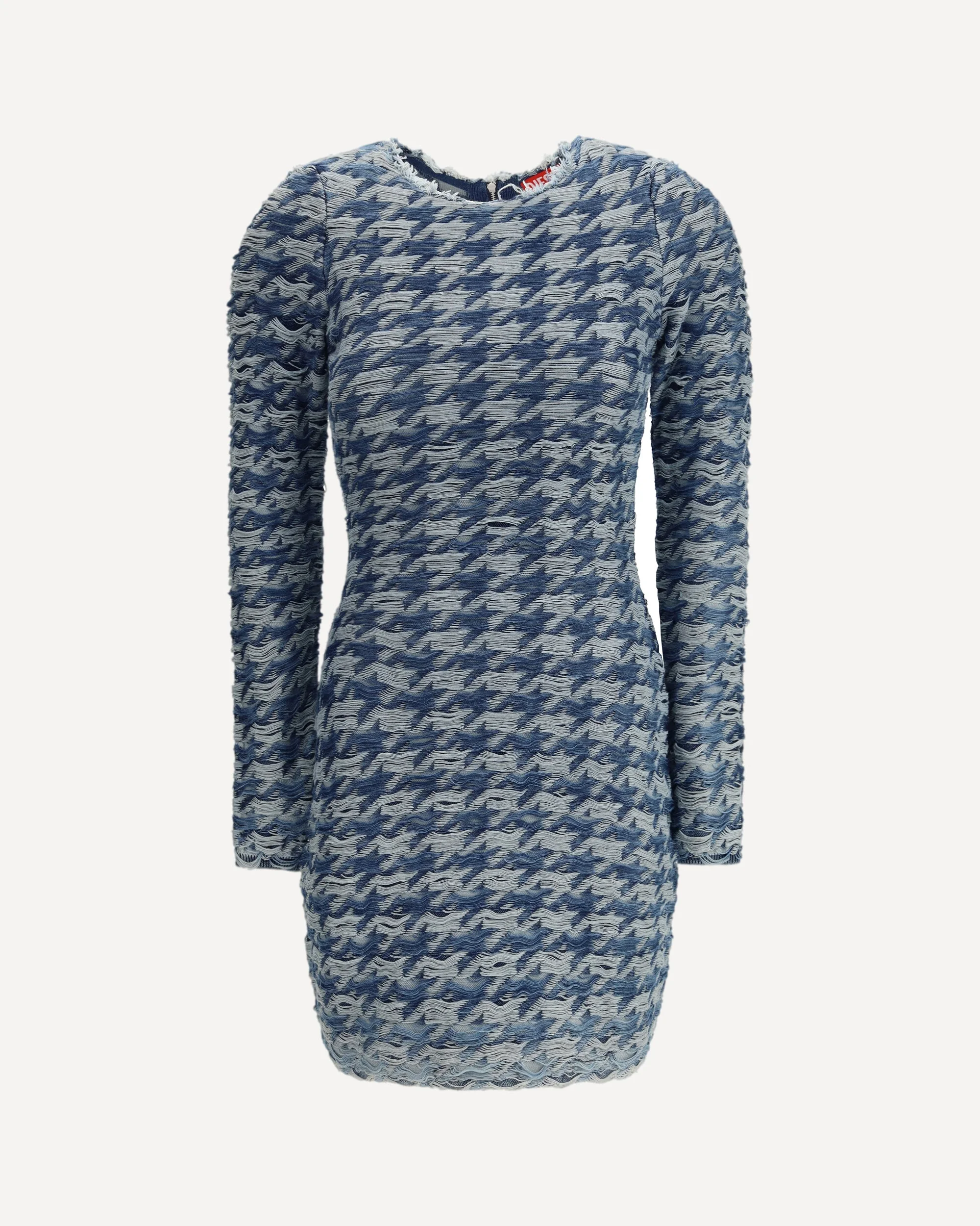 The textured Halma Dress by Diesel is crafted from cotton in shades of blue and light grey, featuring a distinctive weave that enhances the silhouette. Designed with a crew neckline, long sleeves, and a concealed back zip closure, it offers a sleek, form-fitting shape that highlights the figure. A refined piece perfect for a modern and sophisticated look. DETAILS - Sku: A214460EGCA_8ATA - Season: AW25 - Fit: Slim - Composition: GENERAL 100% Cotton - MADE IN ITALY