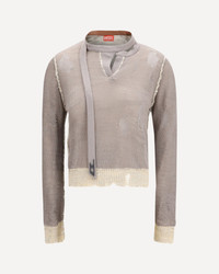 The worn-effect Sweater by Diesel is a bold and contemporary piece. Featuring a cut-out effect on the neck and worn details all over, it offers a lived-in and daring look. The long sleeves and visible stitching complete the design, creating a perfect balance between comfort and streetwear trends. An ideal piece for those who love to be daring with their style. DETAILS - Sku: A237210EGEG_7FM - Season: SS26 - Fit: Regular - Composition: GENERAL 100% Cotton - MADE IN PORTUGAL