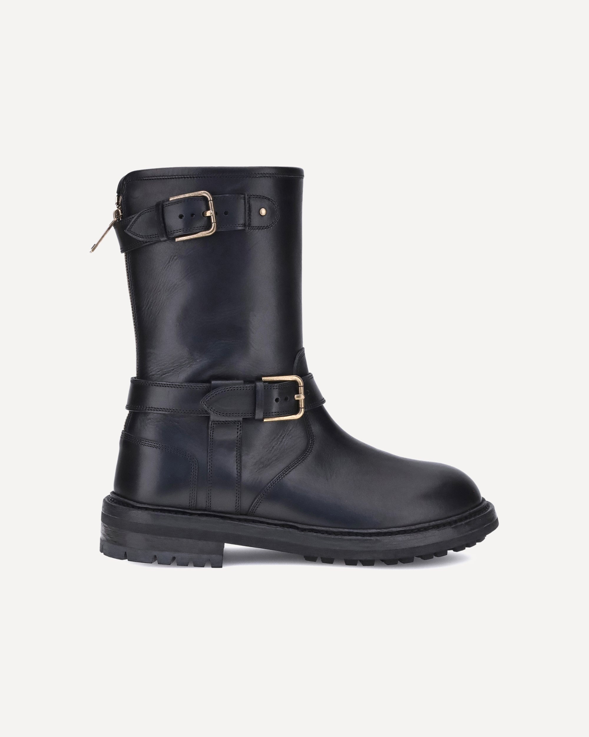 Dolce&Gabbana's signature leather Ankle Boots, perfect for adding a sharp and refined touch to any look. The essential design is enhanced by the round toe and practical zipper closure on the back, which ensures a comfortable and fast fit. The rubber lug sole offers stability and character, making them ideal for facing every day with style and confidence. DETAILS - Sku: A70032AO018_80999 - Season: AW25 - Composition: UPPER 100% Calf Leather Bos Taurus SOLE 100% Rubber - MADE IN ITALY