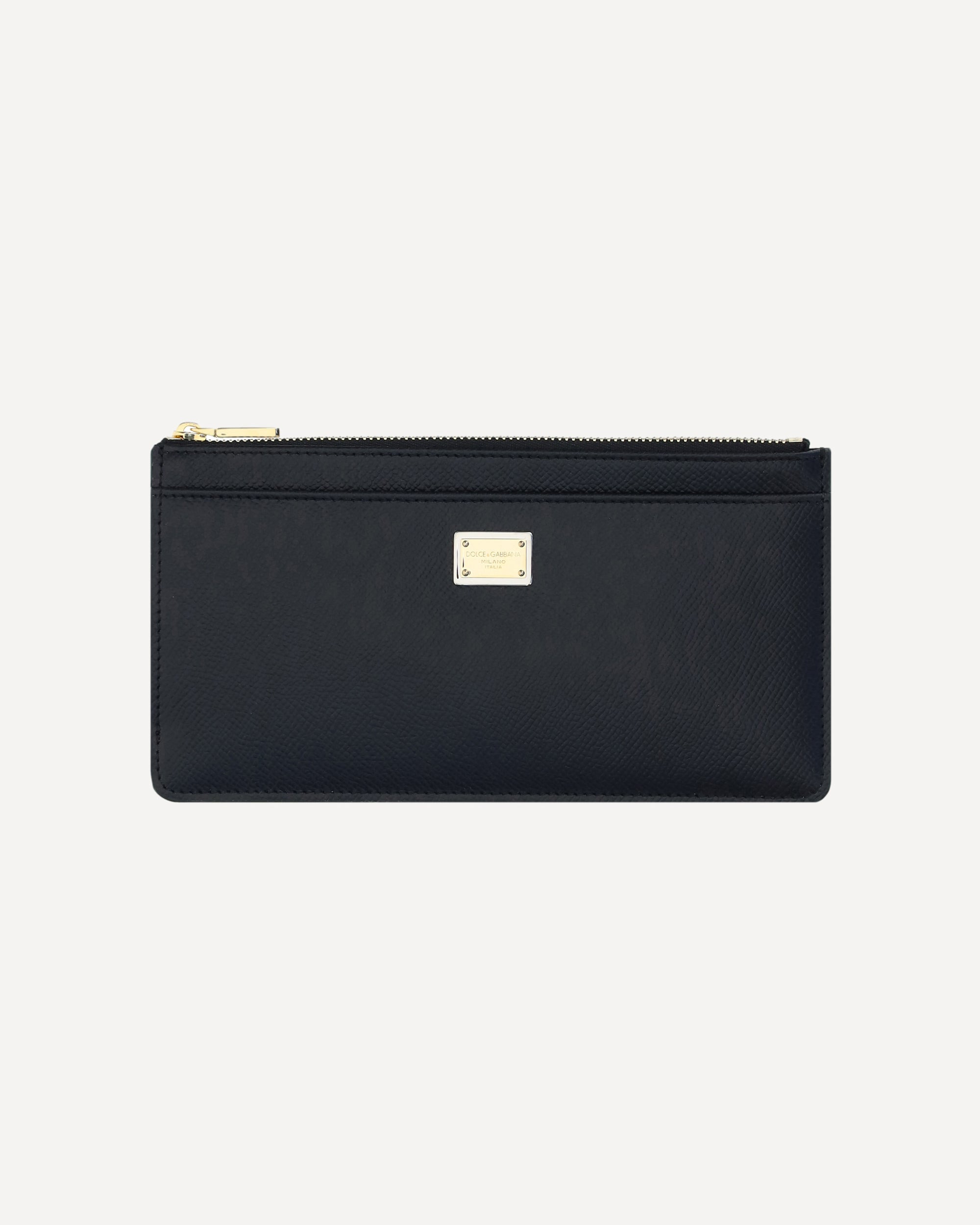 Calfskin Card Holder by Dolce & Gabbana, zip pocket, front flat pocket, logo plaque on front, card slots on back. DETAILS sku BI1265A1001_80999 composition : CALF LEATHER BOS TAURUS 100% color group : BLACK gender : WOMAN season : AW23 size chart : WOMAN UNI category name : WALLETS dimensions : height 10 CM length 19 CM depth 1,5 CM