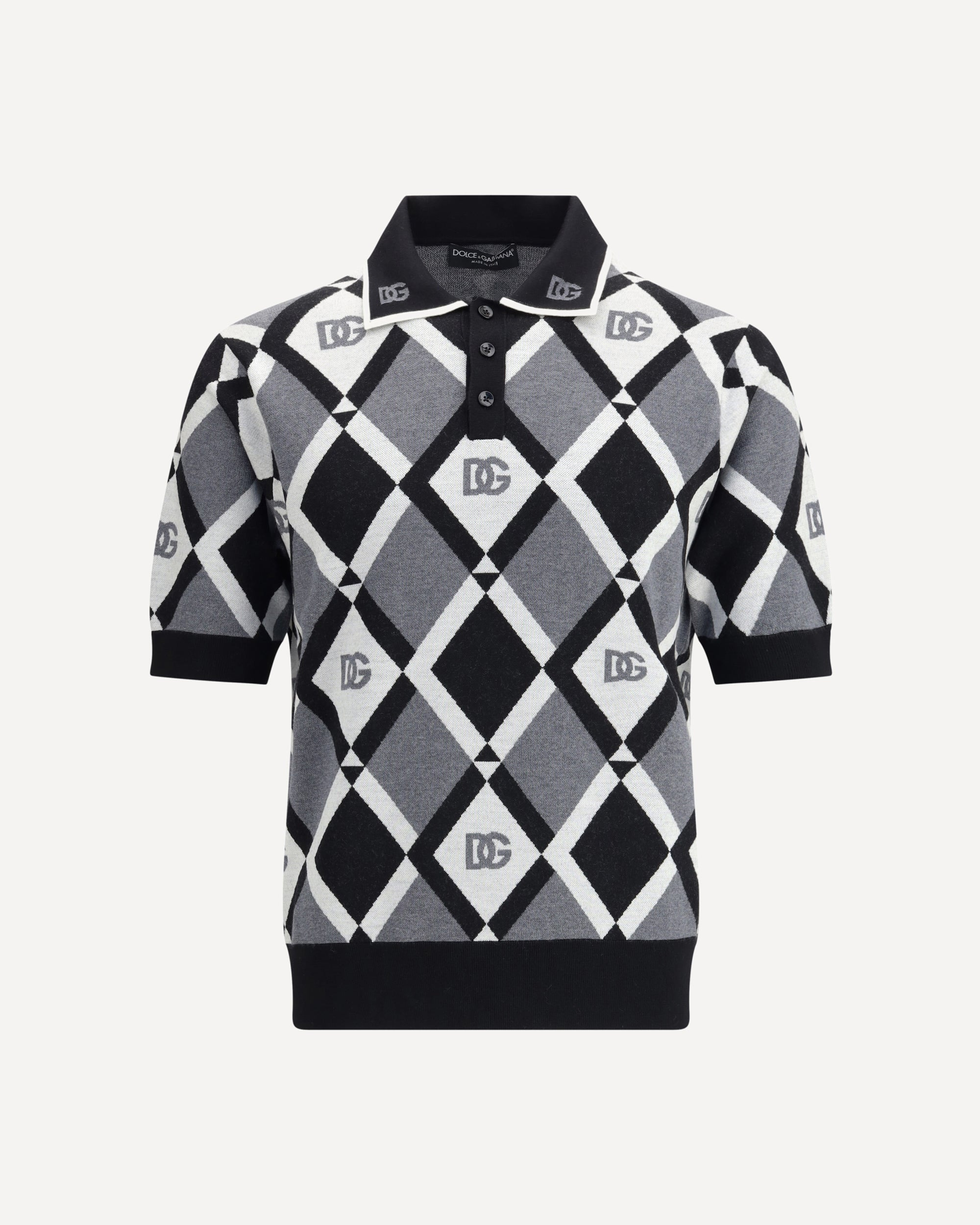 Dolce&Gabbana's diamond knit Polo Sweater is distinguished by its refined geometric pattern featuring diamond motifs with integrated logos. It features a classic collar, a three-button closure and a ribbed hem, combining elegance and comfort in a versatile and contemporary garment. DETAILS - Sku: GXZ15TJDVC9_N0031 - Season: AW25 - Fit: Regular - Composition: GENERAL 100% Fleece Wool - MADE IN ITALY