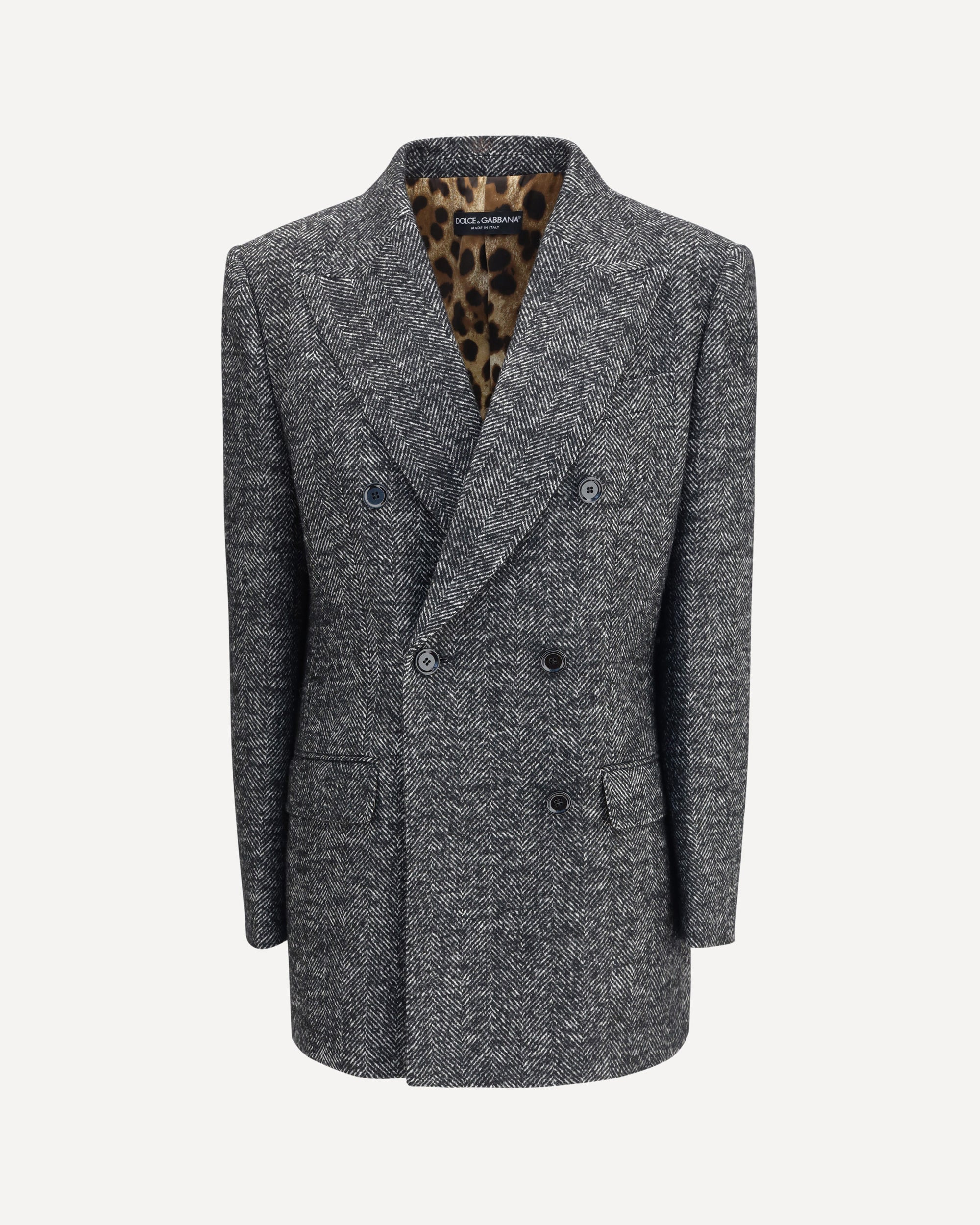 The Double-breasted Chevron Blazer by Dolce&Gabbana is a tailored garment with a classic and sophisticated style. Featuring peaked lapels and a double-breasted button closure, it has long sleeves with slits that enhance its elegant silhouette. Semi-fitted and lined, it combines structure and comfort, making it ideal for completing formal looks with a distinctive touch. DETAILS - Sku: F293DTFCZAF_S8030 - Season: AW25 - Fit: Regular - Composition: GENERAL 56% Fleece Wool 2% Polyester - MADE IN ITALY