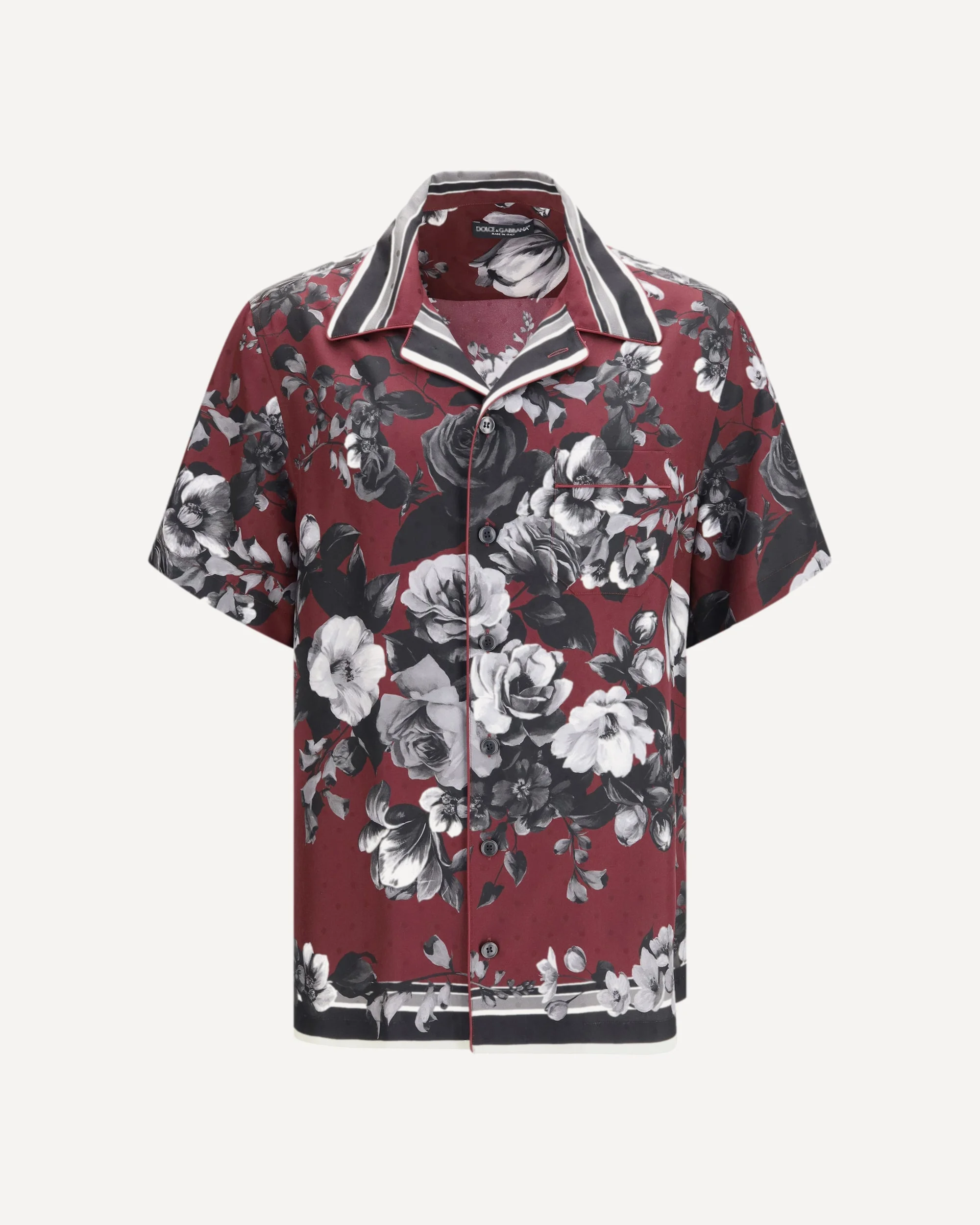 The floral Shirt by Dolce & Gabbana delivers sophisticated elegance with striking visual appeal. Crafted from silk and adorned with a peony print, it stands out for its rich pattern and fluid texture. The front button fastening and chest pocket define a classic silhouette, while striped detailing and piped trims add refined graphic contrast. A statement piece designed for contemporary, elevated styling. DETAILS - Sku: G5KS3THI10N_HR5SV - Season: SS26 - Fit: Regular - Composition: GENERAL 100% Silk - MADE IN ITALY
