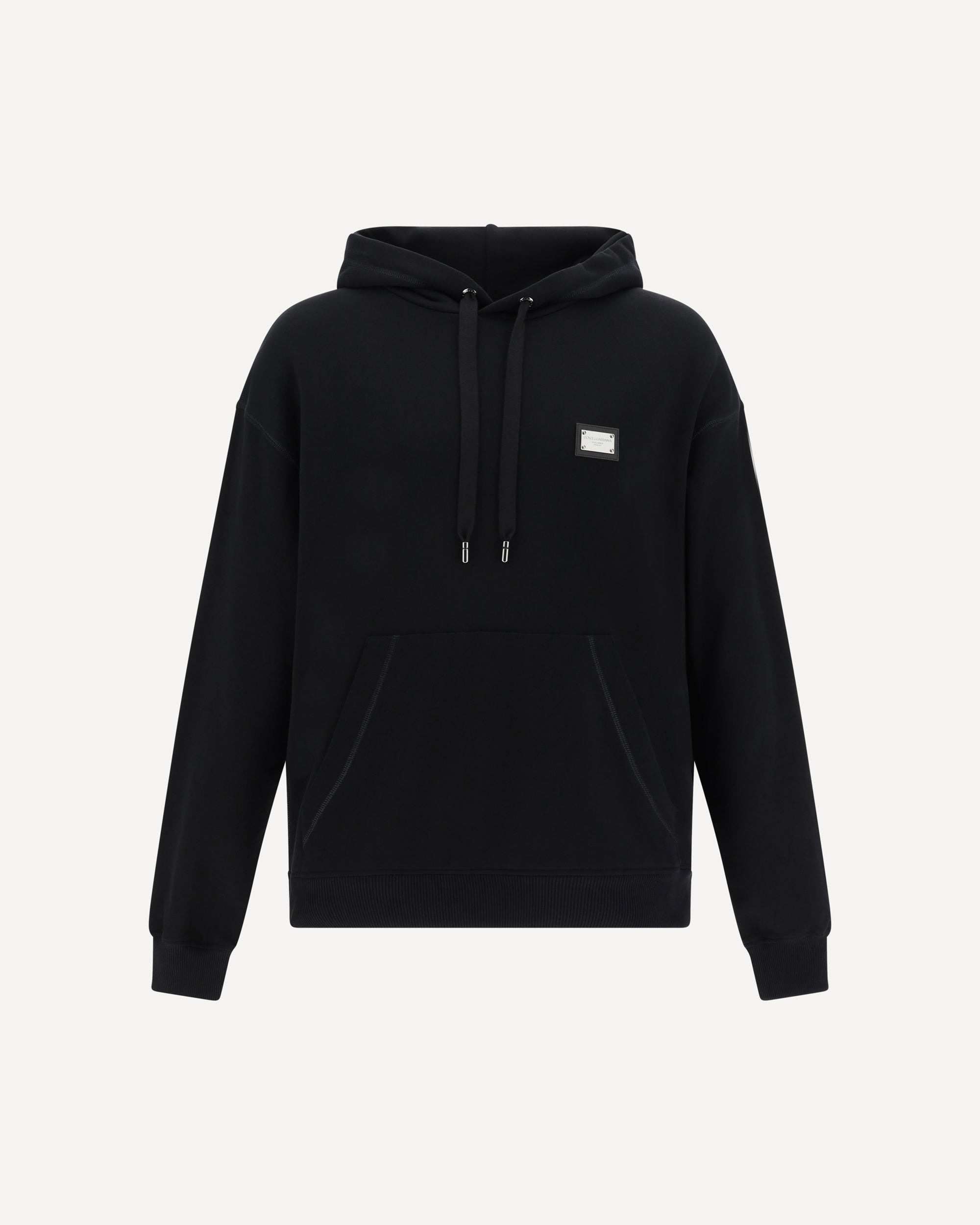 Cotton Hoodie by Dolce&Gabbana, hood with adjustable drawstring, ribbed cuffs, a metal plaque with the brand's iconic D&G monogram engraved and applied to the front, a ribbed hem, a front kangaroo pocket, and an oversized fit. DETAILS sku G9ZU0TG7F2G_N0000 composition : COTTON 100% color group : BLACK gender : MAN season : AW23 size chart : MAN IT category name : SWEATSHIRTS