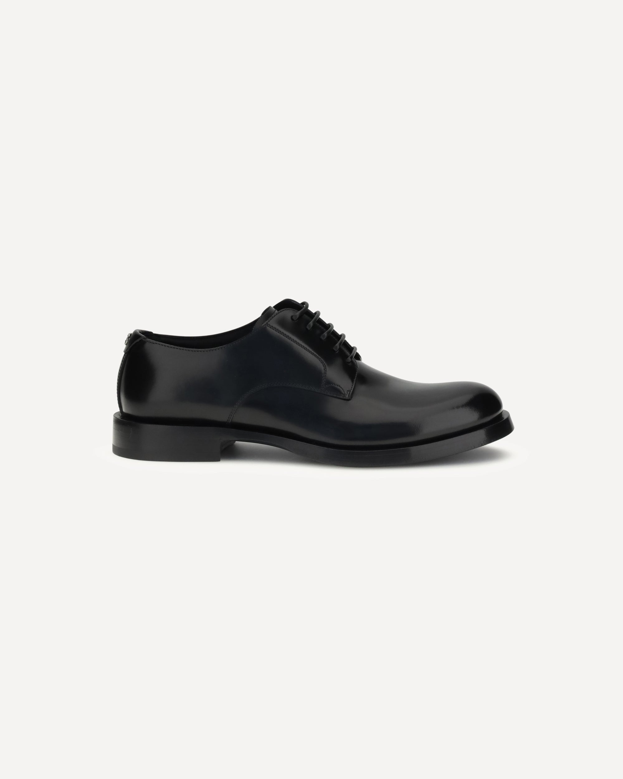 Lace-Up Shoes by Dolce&Gabbana reinterpret the classic derby with a touch of contemporary elegance, designed for the modern man who loves to stand out through details. Made of brushed leather with a sophisticated polished finish, this shoe combines the luxury of Italian craftsmanship with a bold and refined style. The leather sole with TPU bottom ensures comfort and durability, while the leather heel with custom label and crossed DG logo add a distinctive mark. DETAILS - Sku: A10888A1203_80999 - Season: AW25 - Composition: GENERAL 100% Calf Leather Bos Taurus