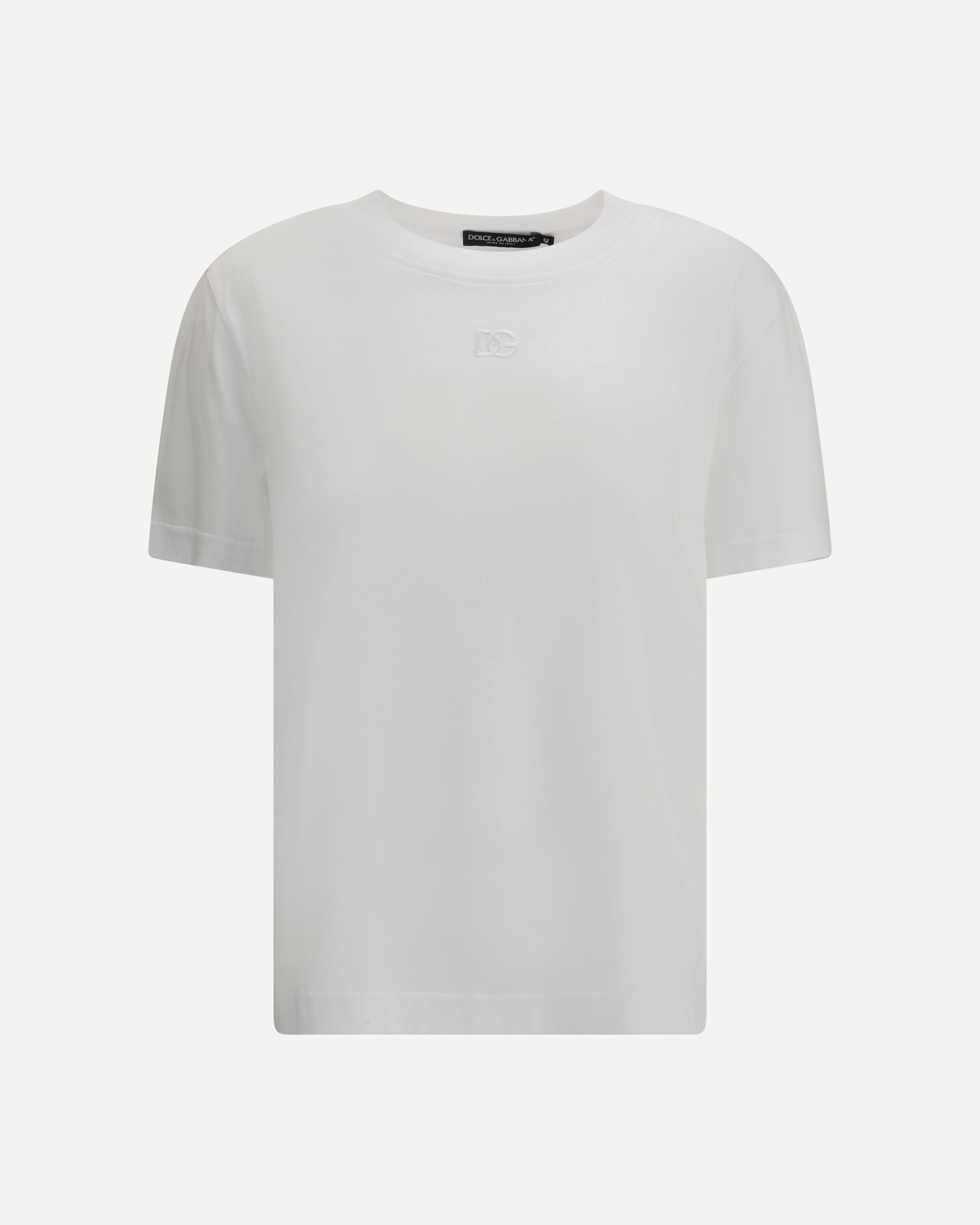 Dolce&Gabbana's T-Shirt is an essential garment with a clean style, embellished with distinctive details. It features a ribbed crew neck and the iconic logo sewn on the front for a recognizable touch that enhances even the most casual looks. DETAILS - Sku: F8V42ZGDC9C_W0800 - Season: AW25 - Fit: Regular - Composition: GENERAL 100% Cotton - MADE IN ITALY