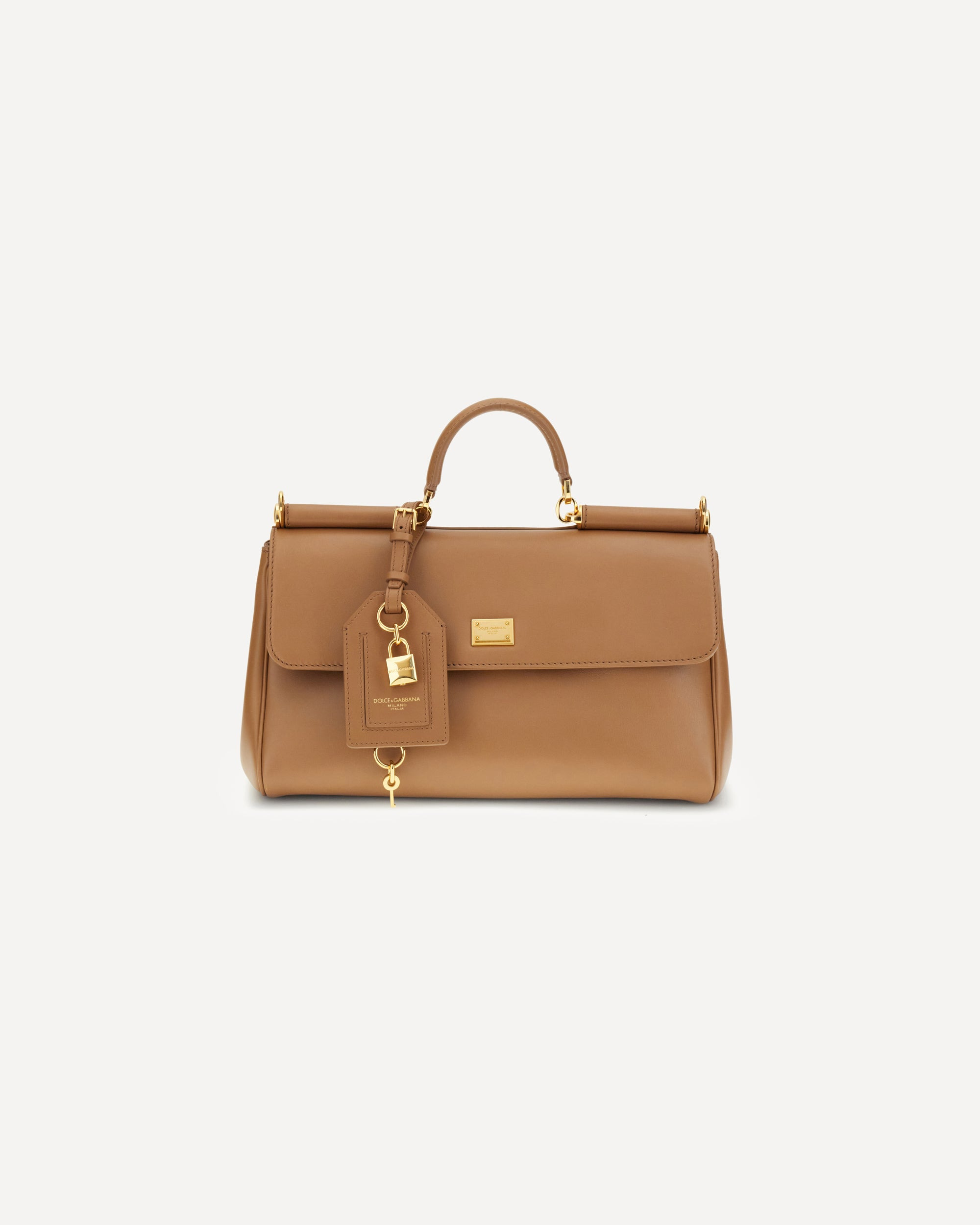Dolce&Gabbana's My Sicily Leather Handbag embodies the house's timeless elegance and signature sophistication. Featuring a rigid top handle, it offers sophisticated portability, while the flat, adjustable and removable shoulder strap adds practicality and versatility. The front flap closure with magnetic buttons provides security, while applied logo hardware on the front adds a distinctive touch. The interior, with a single compartment, is designed to store essentials in style and order. DETAILS - Sku: BB7782B7321_8Z093 - Season: AW25 - Dimension: 30x30x13 - Composition: GENERAL 100% Calf Leather Bos Taurus - MADE IN ITALY