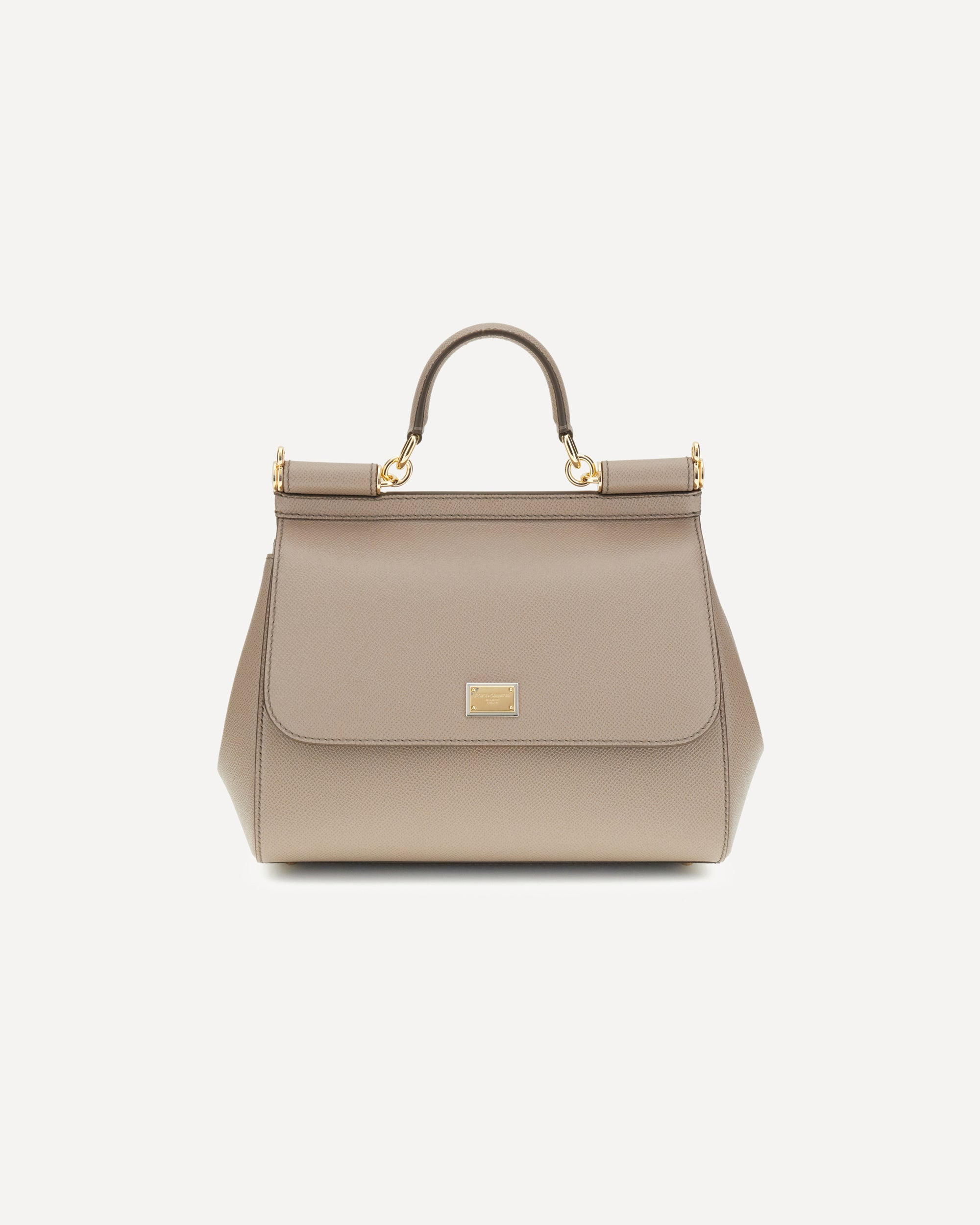 Dolce&Gabbana's My Sicily leather Handbag embodies the house's timeless elegance and signature sophistication. Featuring a rigid top handle, it offers sophisticated portability, while the flat, adjustable and removable shoulder strap adds practicality and versatility. The front flap closure with magnetic buttons provides security, while the applied logo hardware on the front adds a distinctive touch. The interior, with a single compartment, is designed to store essentials in style and order. DETAILS - Sku: BB6002B1001_80045 - Season: AW25 - Dimension: 25x25x12 - Composition: GENERAL 100% Calf Leather Bos Taurus - MADE IN ITALY