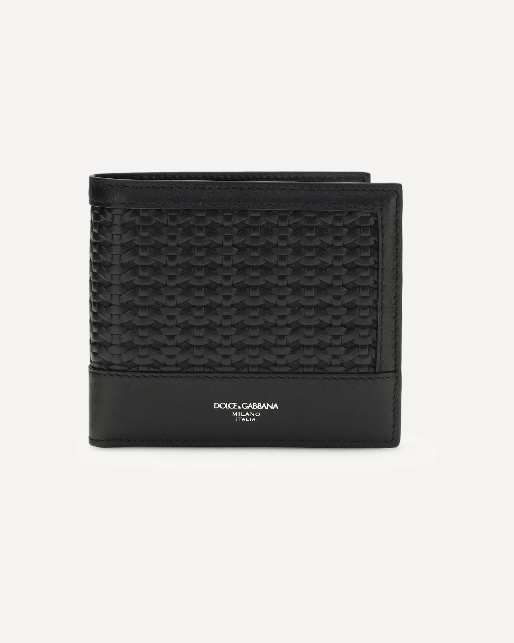 The plonge leather Wallet by Dolce&Gabbana with interlacing is an elegant and functional accessory, characterized by craftsmanship that gives it a sophisticated look. The external personalization with foil stamping and the internal hot stamping add a distinctive touch of luxury. Equipped with 8 card slots and one for bills, it offers perfect organization for your essentials. A high-quality wallet, ideal for those seeking elegance and practicality in a single accessory. DETAILS - Sku: BP1321AN419_8B956 - Season: SS26 - Dimension: 11x9.2 - Composition: GENERAL 100% Calf Leather Bos Taurus - MADE IN ITALY