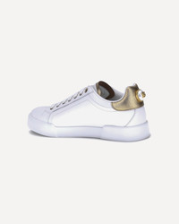 Portofino leather Sneakers by Dolce&Gabbana feature a lace-up front closure. Featuring the iconic contrasting monogram on the side panels and a contrasting heel with three-dimensional logo detail, these sneakers feature a sleek and distinctive design. The flat sole offers comfort and versatility, while the branded insole completes the look with added style detail. A model that combines the iconicity of the house with everyday practicality. DETAILS - Sku: CK2329AN298_8B996 - Season: AW25 - Composition: UPPER 100% Calf Leather Bos Taurus SOLE 100% Rubber - MADE IN ITALY