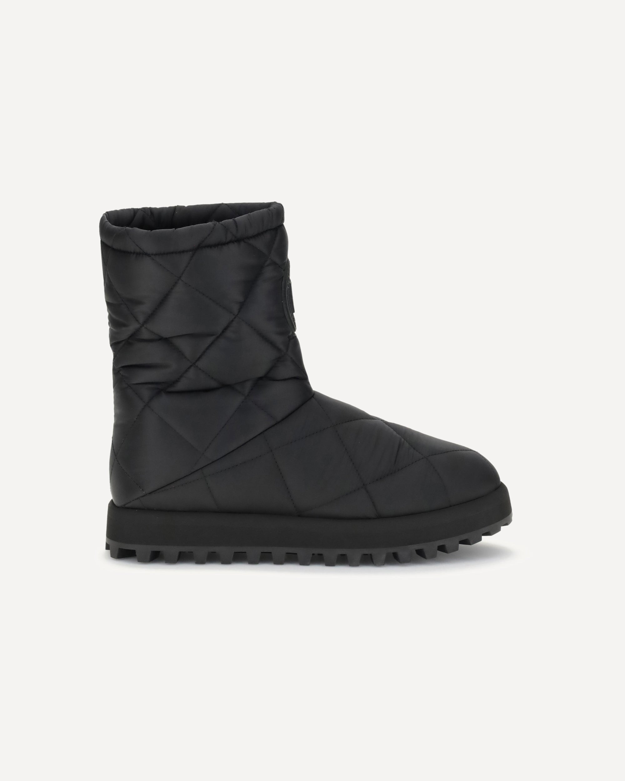 Dolce&Gabbana's Quilted Boots combine bold style and functionality. Featuring a quilted diamond pattern, they have a round toe and a sturdy rubber lug sole, ideal for grip and durability. The design is completed with a logo patch, which signs the model with an iconic touch. DETAILS - Sku: A70165AQ075_80999 - Season: AW25 - Composition: UPPER 81% Polyamide 19% Polyurethane SOLE 100% Rubber - MADE IN ITALY