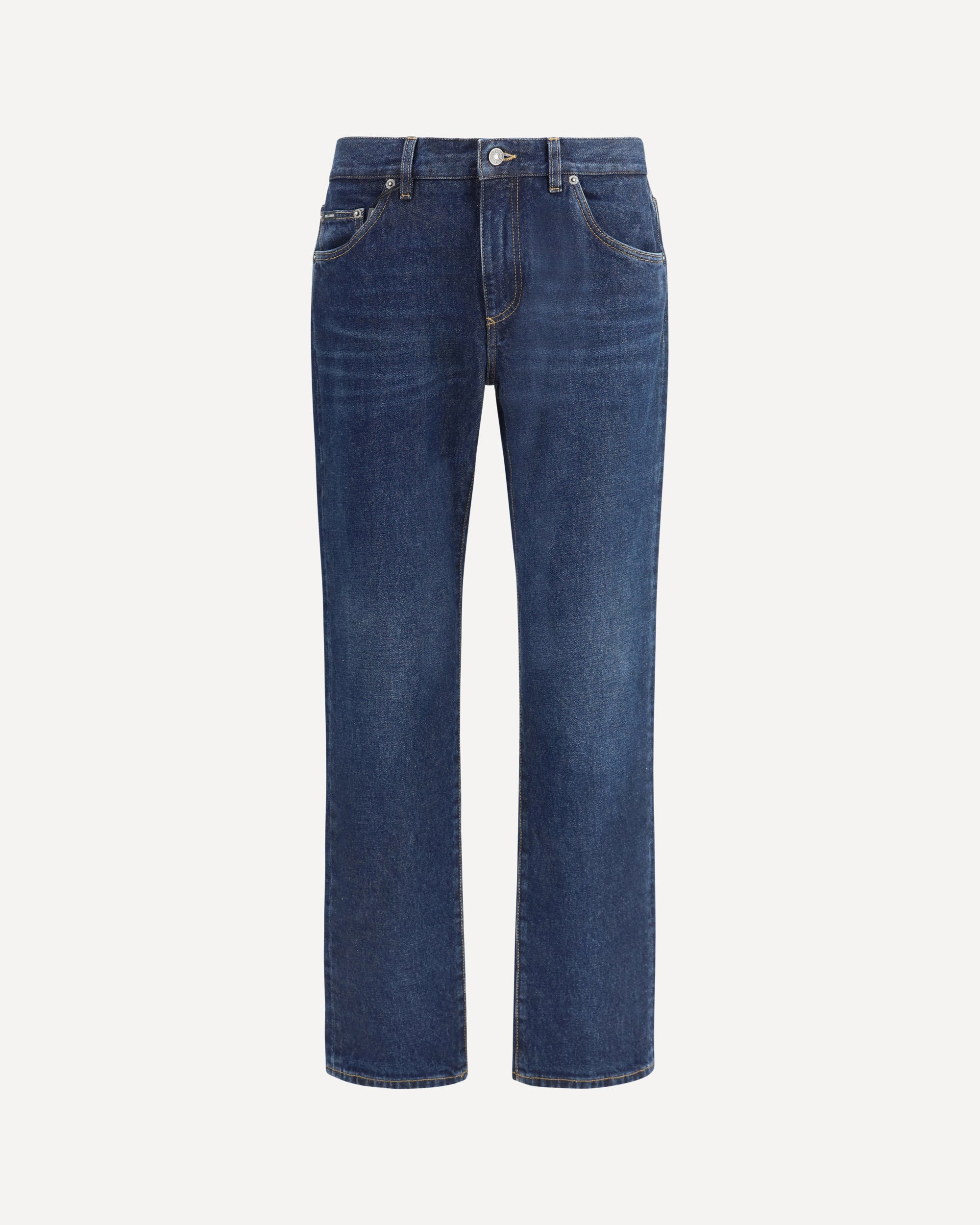 Dolce&Gabbana's straight Jeans are a 5-pocket model with a classic and timeless cut. They feature a classic fit, with a zipper and button closure, and are complemented by a logo plaque on the back, a distinctive detail of the brand's style. DETAILS - Sku: GP02XDG8NK7_S9001 - Season: AW25 - Fit: Regular - Composition: GENERAL 100% Cotton - MADE IN ITALY