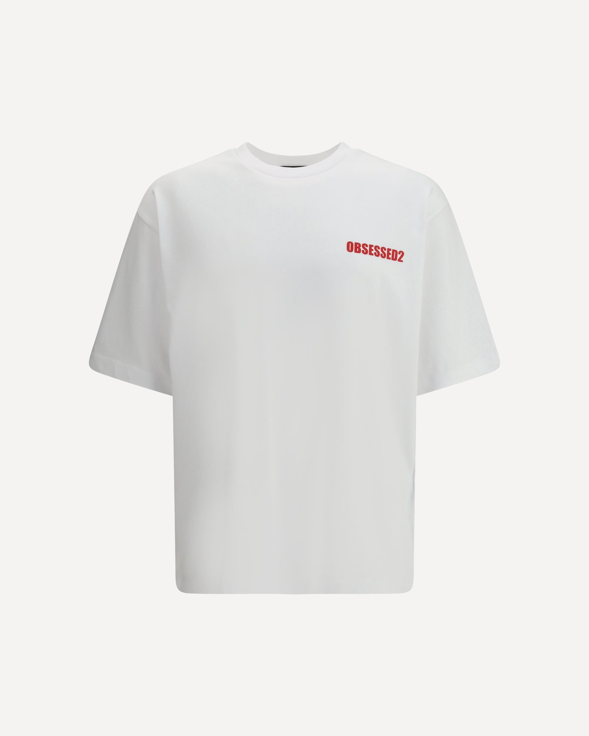 Dsquared2's T-Shirt is a casual piece with a strong character, made from cotton and finished with a classic ribbed crew neck. The contrasting Obsessed2 print stands out on the front and the iconic signature on the back adds a graphic and distinctive touch to the essential design. DETAILS - Sku: S74GD1479D20033_961 - Season: AW25 - Fit: Regular - Composition: GENERAL 100% Cotton - MADE IN TURKEY