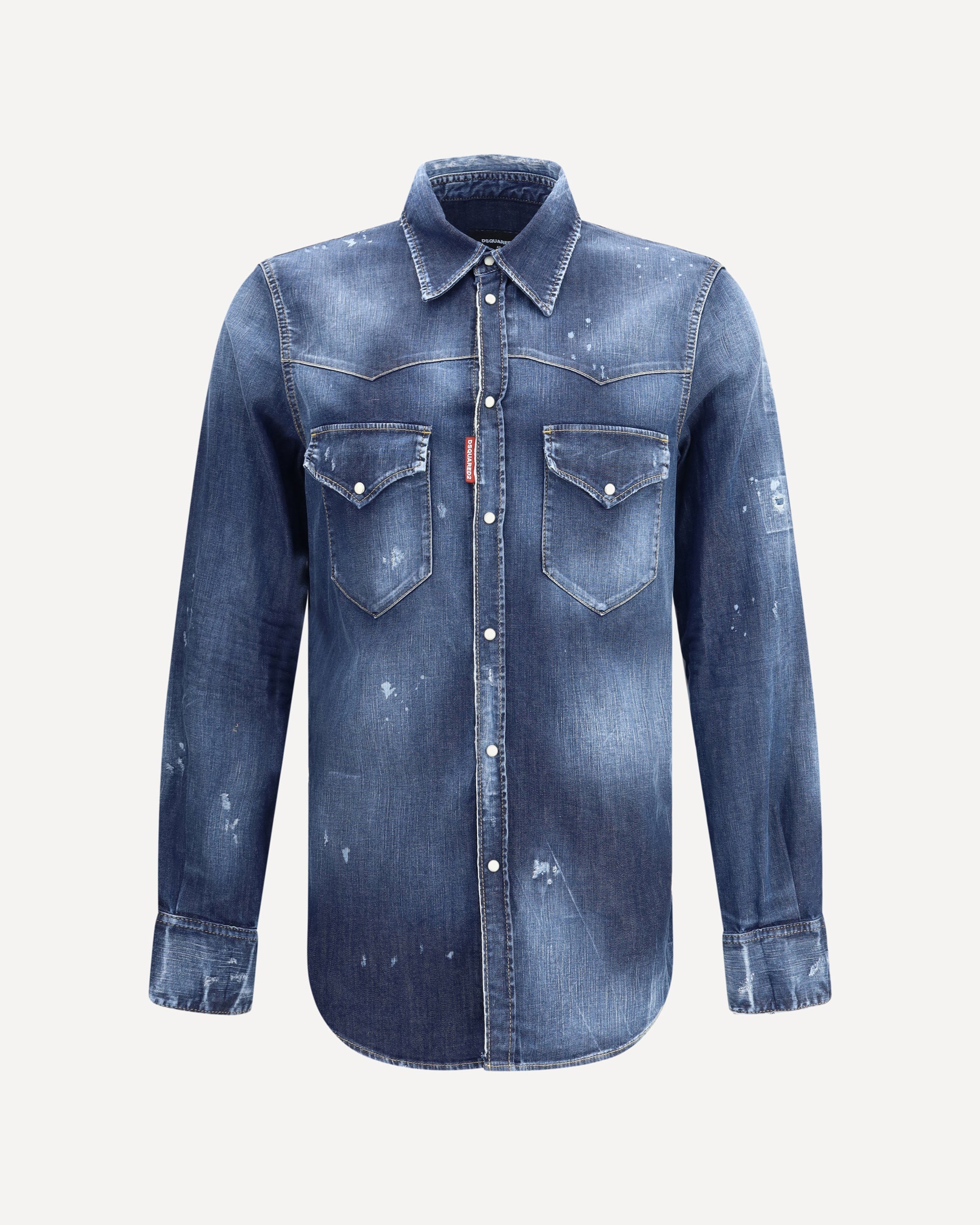 Dsquared2's Fashion Western shirt combines classic Western style with an urban, lived-in aesthetic. Made of cotton denim with a vintage worn-effect design, it features a classic collar, front button closure and adjustable button cuffs. The two flap pockets on the chest complete the look with an authentic touch. A garment with a strong character, perfect for those seeking a distinctive and contemporary style. DETAILS - Sku: S74DM0935S30341_470 - Season: AW25 - Fit: Regular - Composition: GENERAL 100% Cotton - MADE IN ITALY