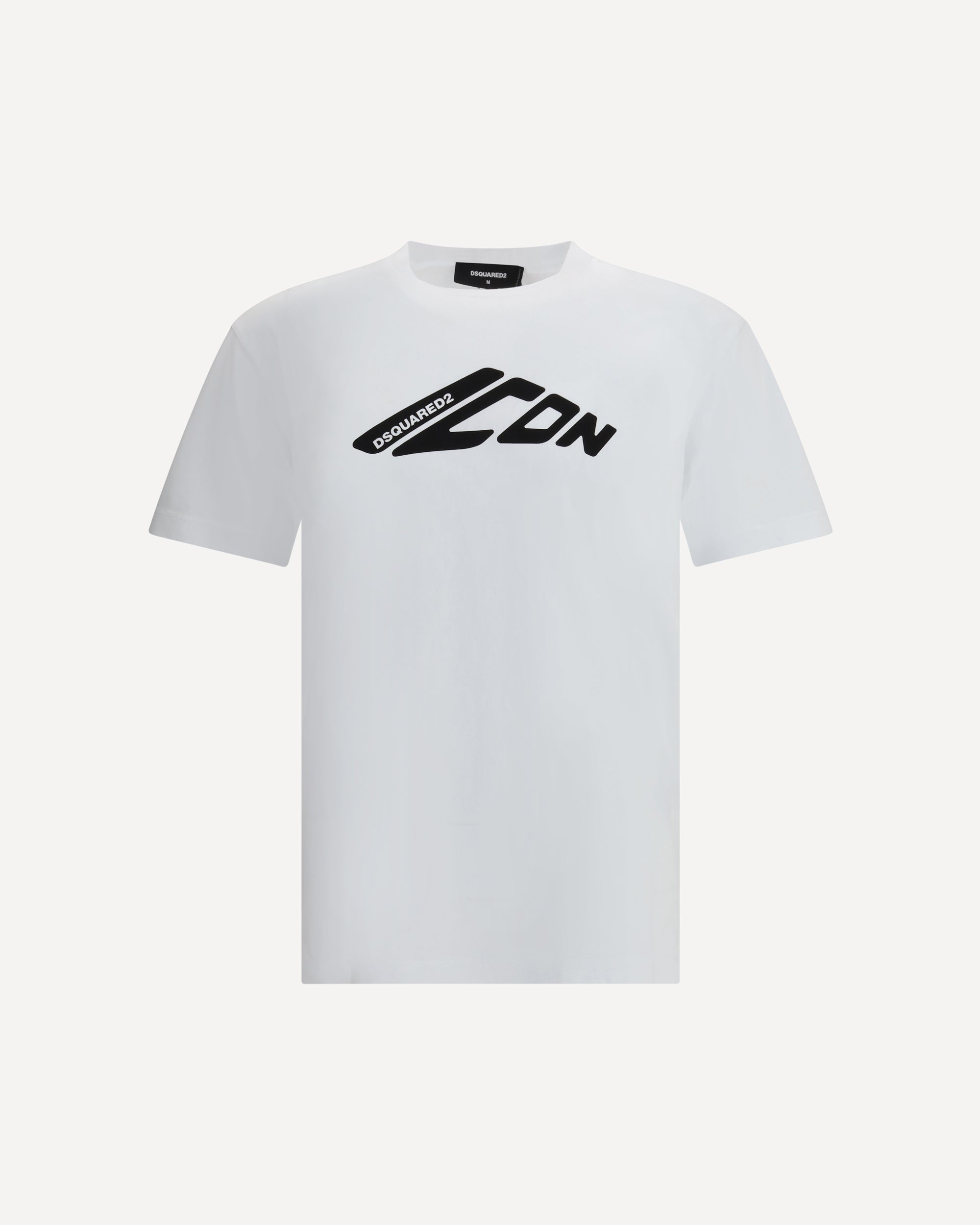 Dsquared2's contrasting logo cotton T-shirt is an essential garment with a strong character. Made from soft pure cotton jersey, it features a ribbed crew neck and a front print with iconic monogram and logo for a recognizable, urban style. Perfect to pair with jeans or jogger pants for an on-trend casual look. DETAILS - Sku: S79GC0116D20020_100 - Season: AW25 - Fit: Regular - Composition: GENERAL 100% Cotton - MADE IN ROMANIA
