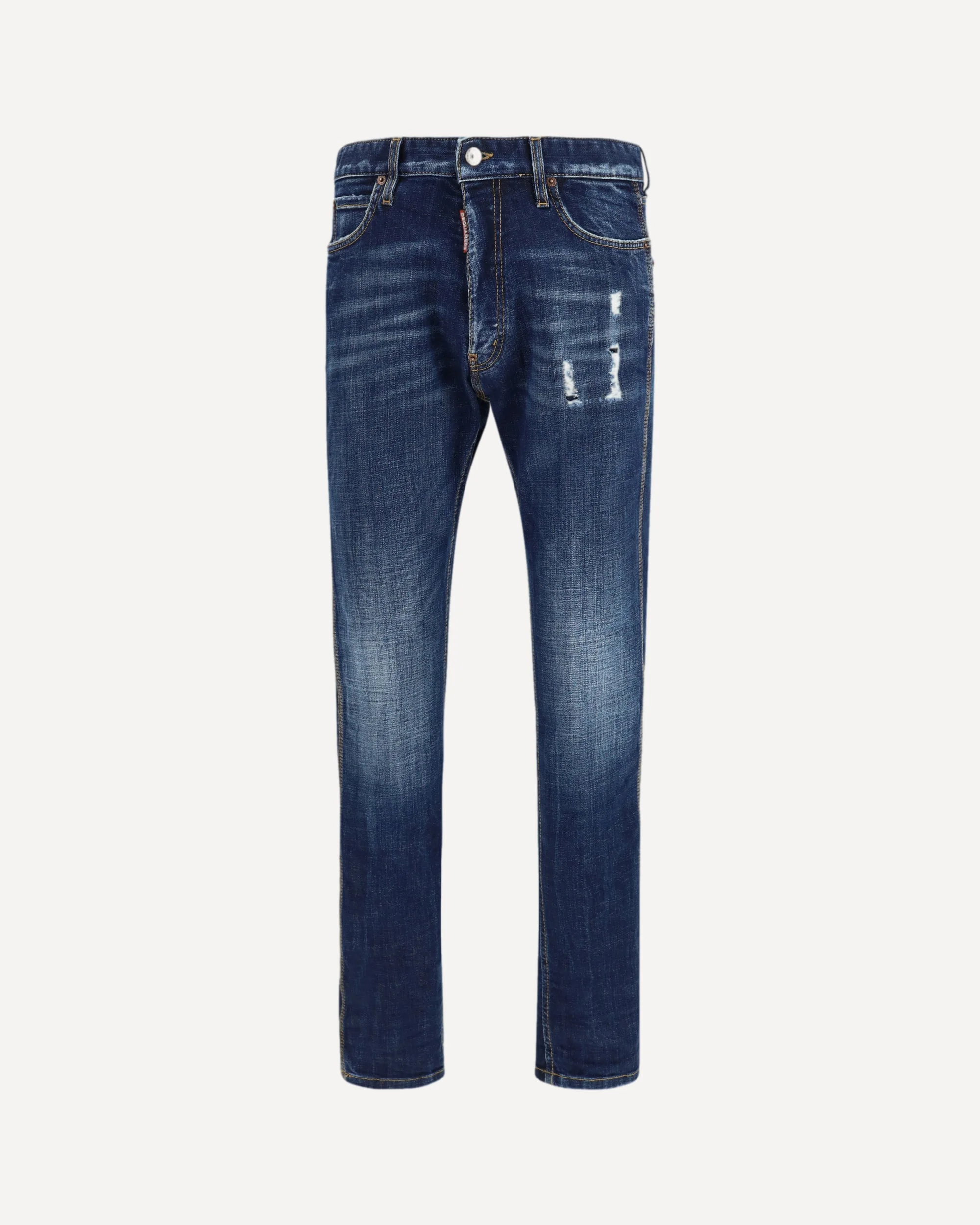 The Teddy Mini Front Jeans by Dsquared2 showcase a bold, contemporary aesthetic enhanced by a distressed effect that adds character and personality. The classic five-pocket design is completed with a button fastening, belt loops and the iconic logo patch on the back. A statement piece designed to elevate casual looks with strong stylistic impact. DETAILS - Sku: S74LB1914S30664_470 - Season: SS26 - Fit: Regular - Composition: GENERAL 100% Cotton - MADE IN ALBANIA