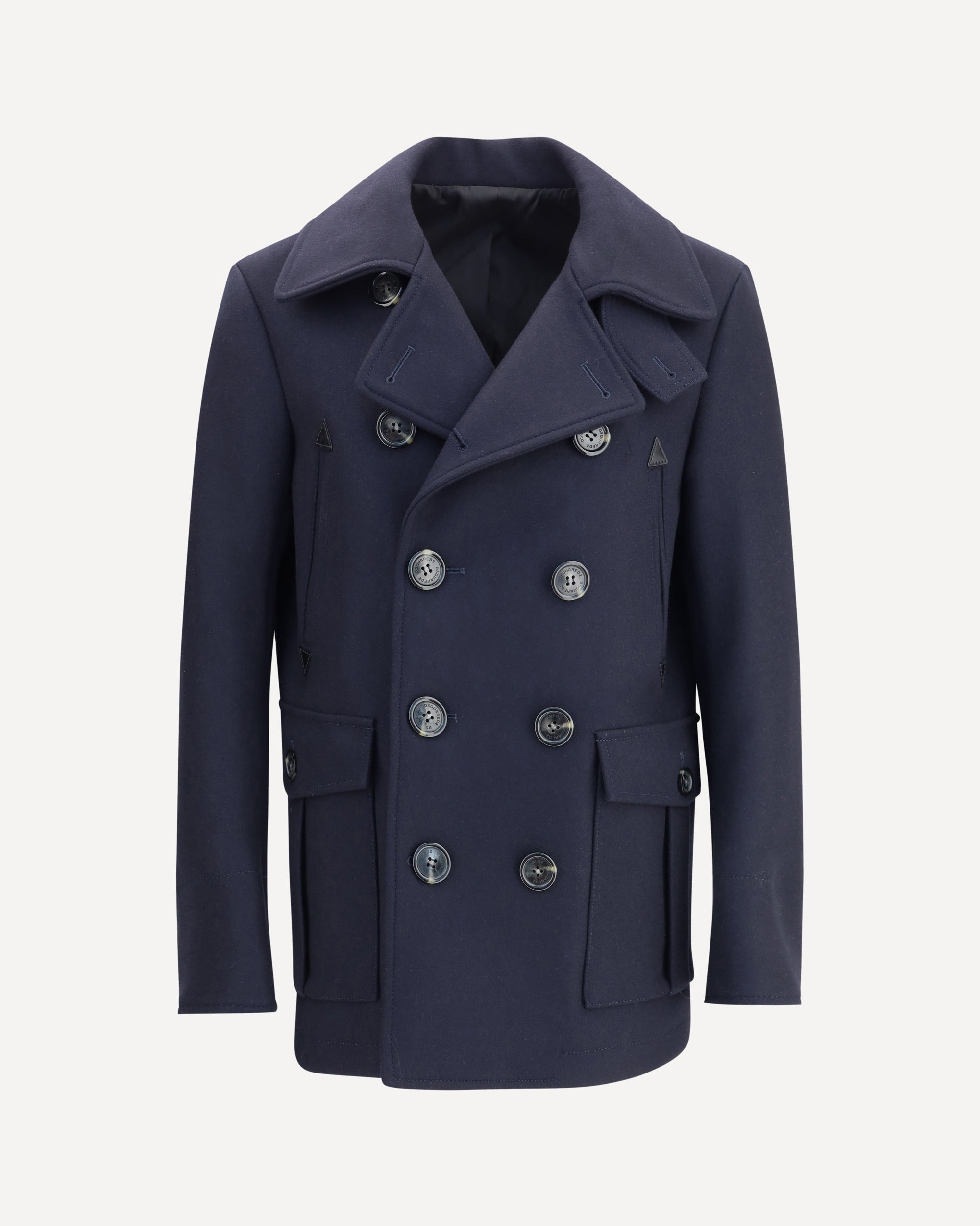 Dsquared2's wool caban Coat reinterprets an outerwear classic with the house's unmistakable style. Featuring classic lapels and a double-breasted button closure, it has two side flap patch pockets and a back slit, which enhances its structured line and fit. An elegant and sharp garment, perfect for the cold season. DETAILS - Sku: S74AA0323S53003_524 - Season: AW25 - Fit: Regular - Composition: GENERAL 74% Wool 25% Polyamide 1% Elastane - MADE IN ITALY