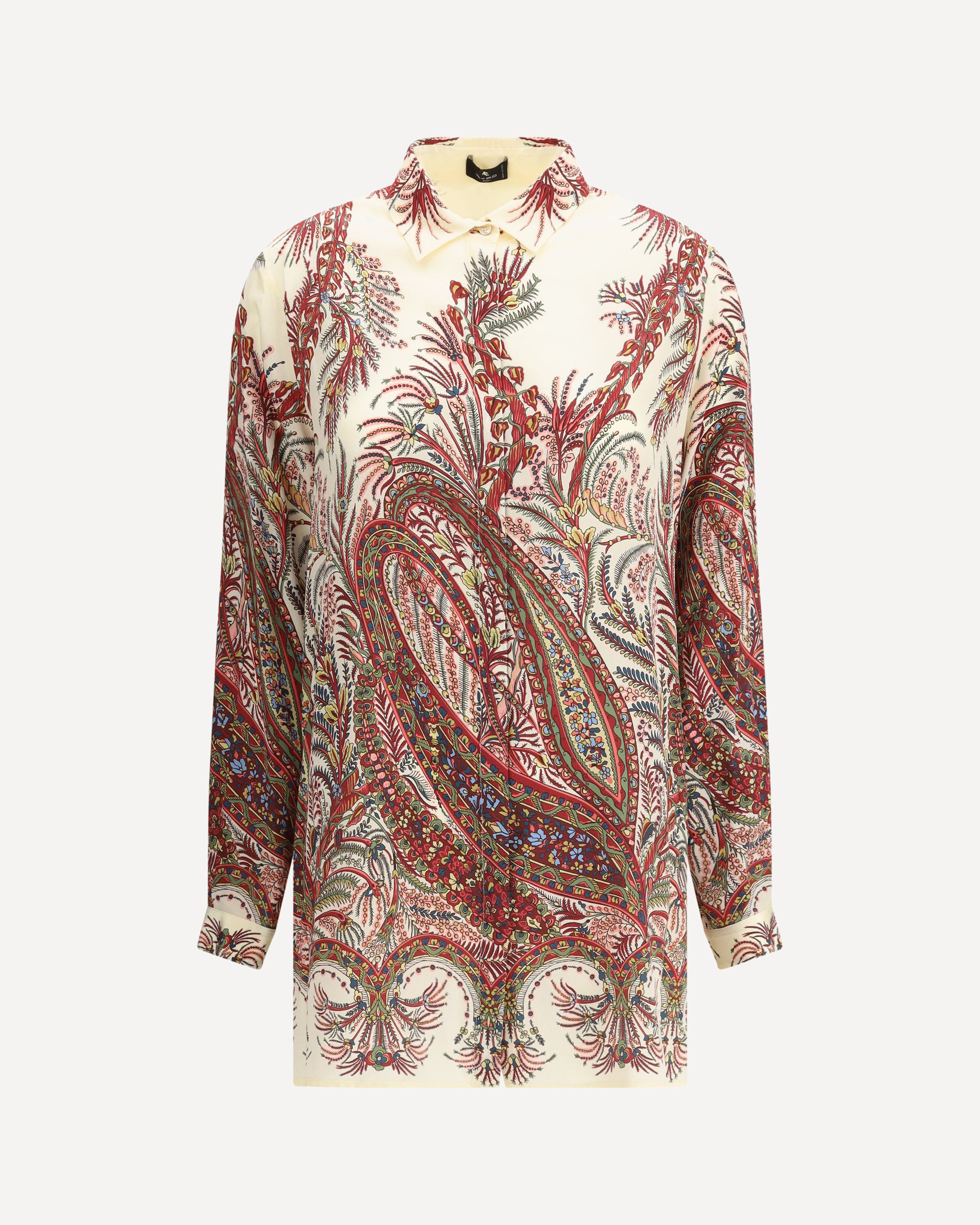 The Etro Shirt is made of pure silk crepe de Chine and stands out for its long and straight design, embellished with a placed floral Paisley print, emblem of the iconic style of the maison. The regular fit ensures comfort and elegance, completed by a classic collar, long sleeves and buttoned cuffs for a touch of sophisticated femininity. DETAILS - Sku: WRIA0029AKA36_X0801 - Season: AW25 - Fit: Oversize - Composition: GENERAL 100% Silk - MADE IN ITALY