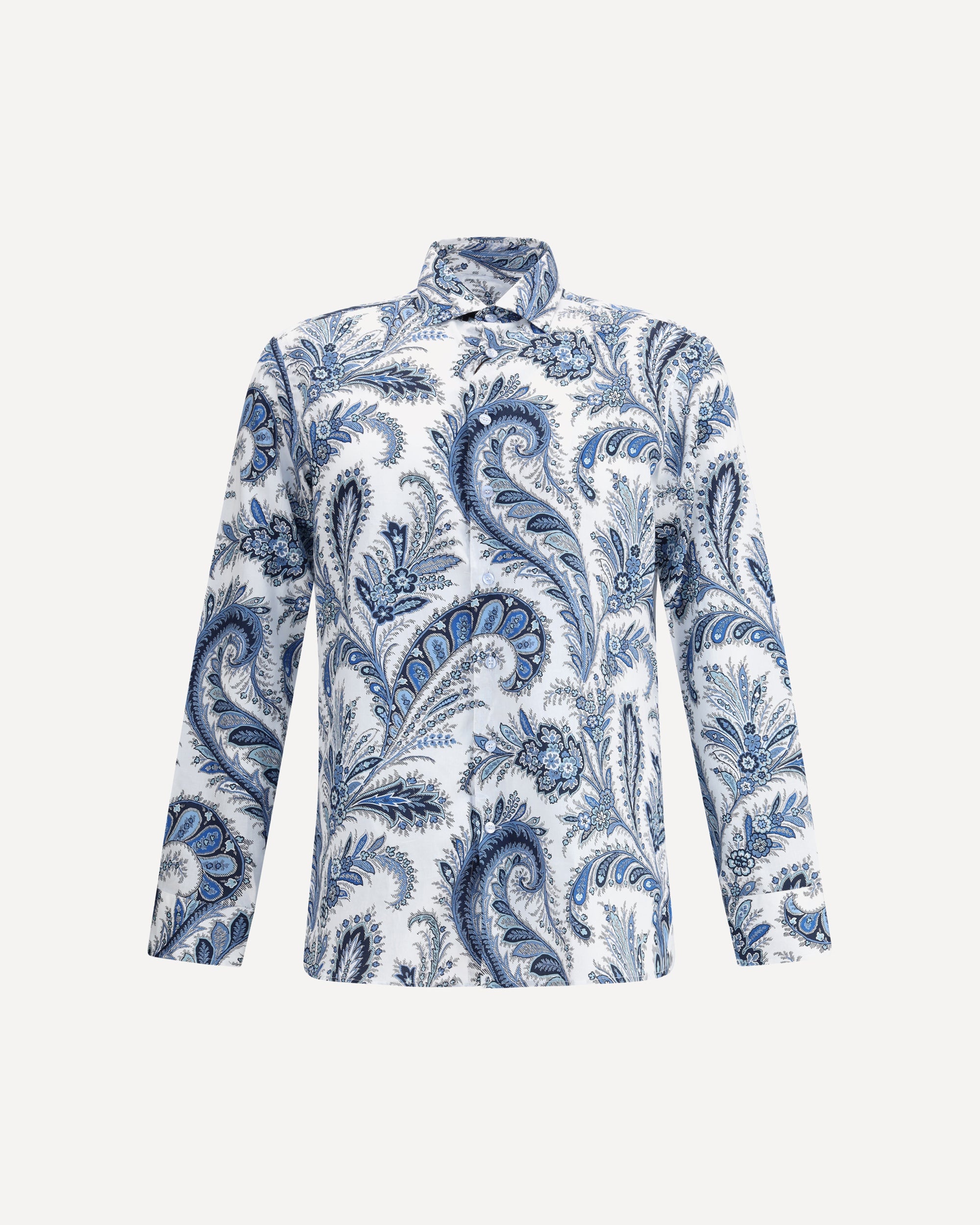 Cotton Roma Shirt by Etro features a classic collar and front button closure for a clean, versatile look. Adjustable button cuffs ensure a customizable fit. The garment features the iconic contrasting paisley pattern, the brand's signature symbol, which adds a touch of elegance and originality to the design. Perfect for those seeking style and comfort for any occasion. DETAILS - Sku: MRIB000199SA5L1_X0802 - Season: AW25 - Fit: Regular - Composition: GENERAL 100% Cotton - MADE IN ITALY