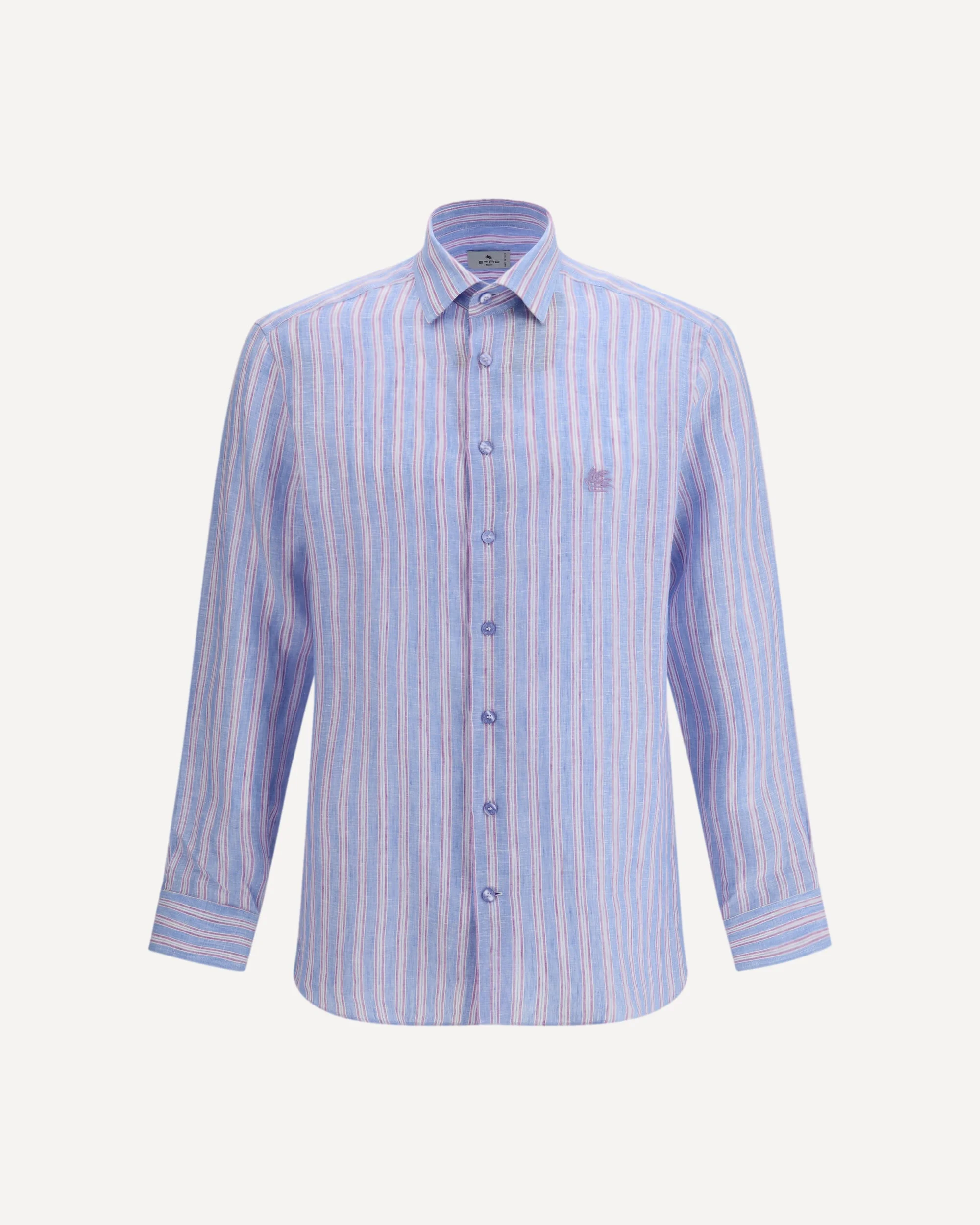 The striped linen Shirt by Etro combines lightness and refinement in a clean, distinctive design. Crafted from pure linen, it features a single-row button front closure and a small embroidered Pegaso logo on the chest for a subtle signature touch. The vertical stripe pattern enhances the silhouette, making this shirt a versatile choice for an elegant yet relaxed wardrobe. DETAILS - Sku: MRIB000299TR341_S9880 - Season: SS26 - Fit: Regular - Composition: GENERAL 100% Linen - MADE IN ITALY